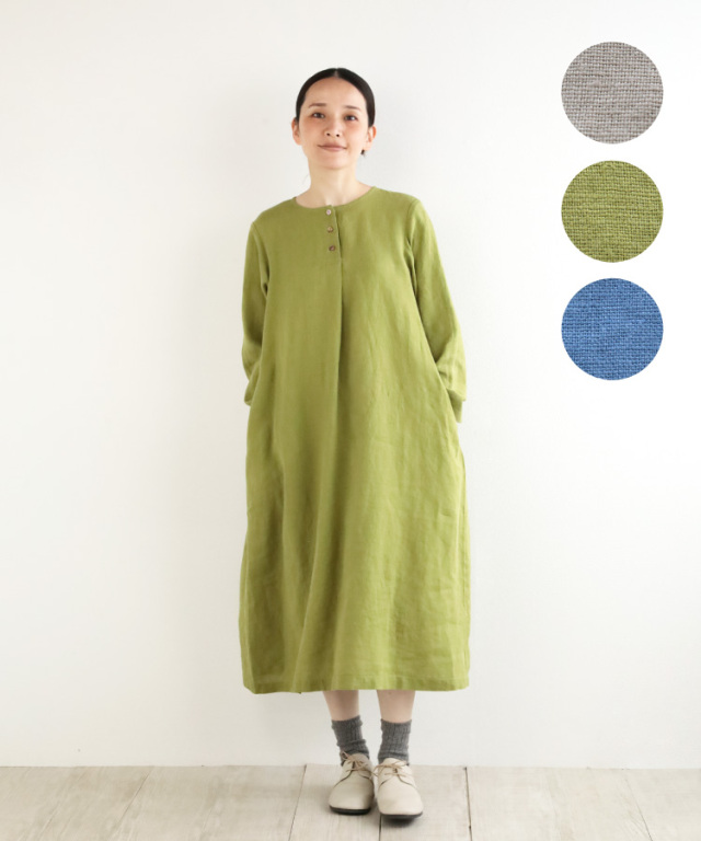 【nofl】リトアニアリネン前あきタックワンピース