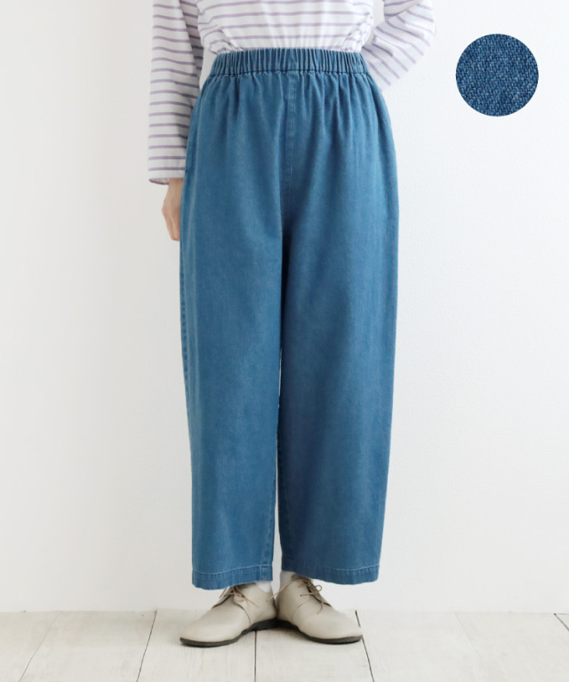 【nofl】リネンオリーブ刺繍イージーパンツ