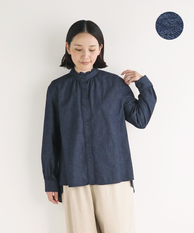 【nofl】コットンデニムフリルブラウス
