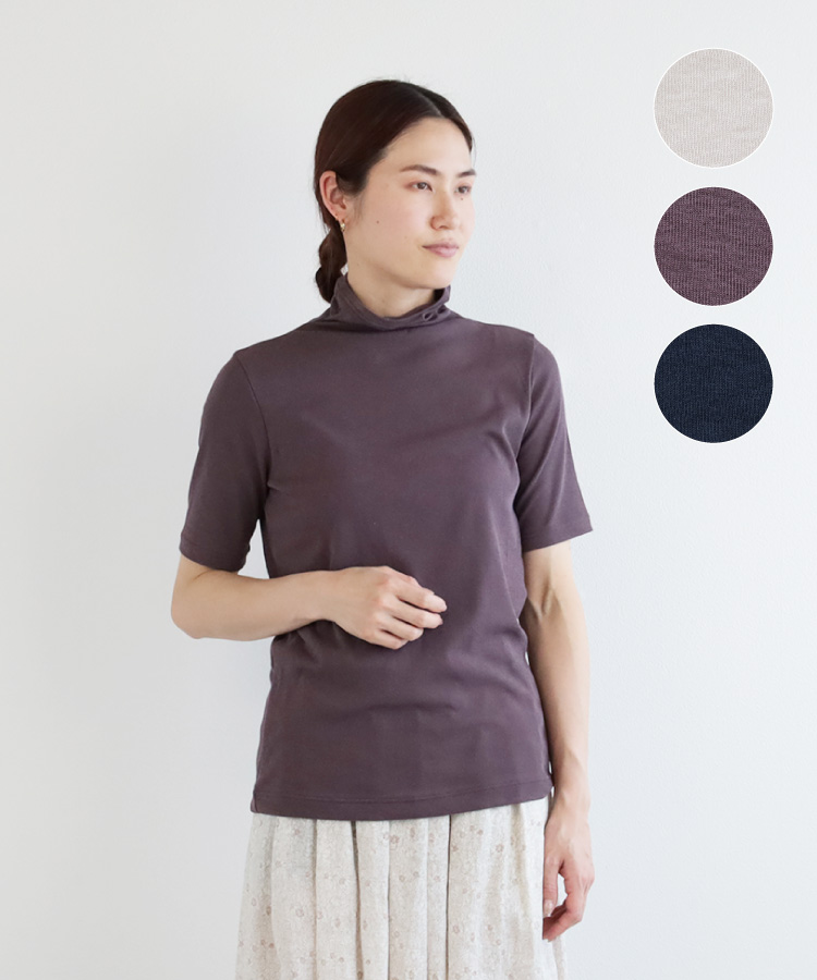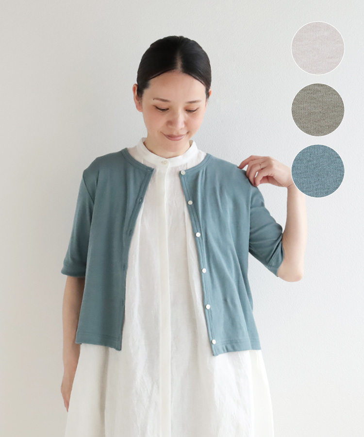 【nofl】リトアニアリネン後ろあきショート丈五分袖ワンピース