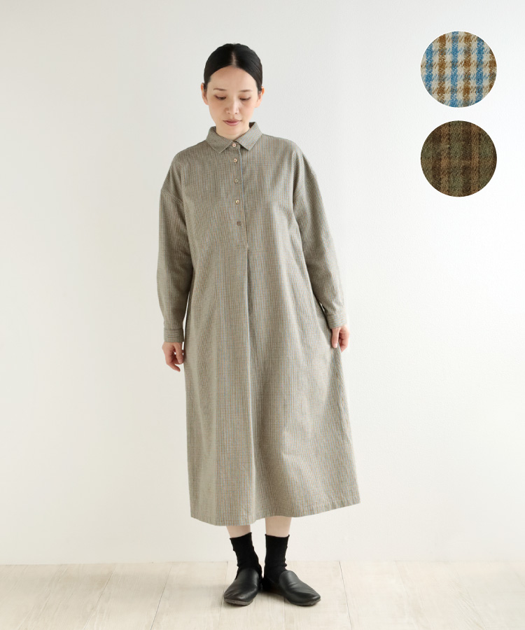 【nofl】コットンウールケーブルバイカラーソックス[H-083]コットン起毛チェックシャツワンピース