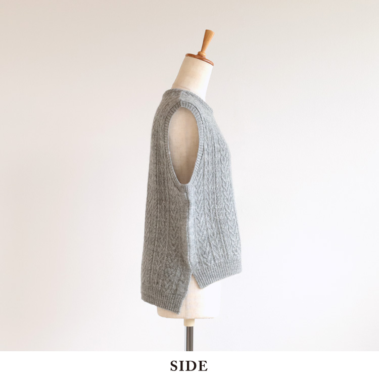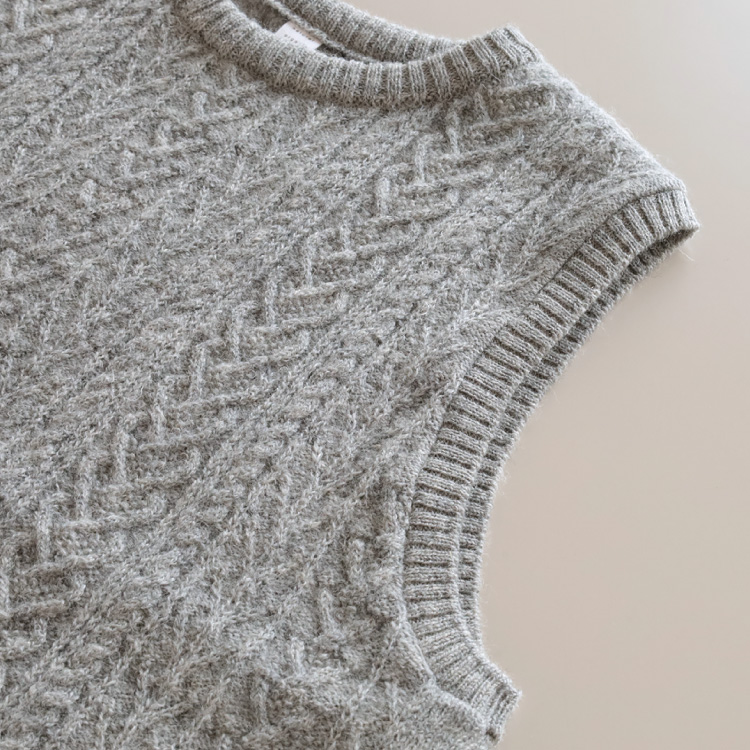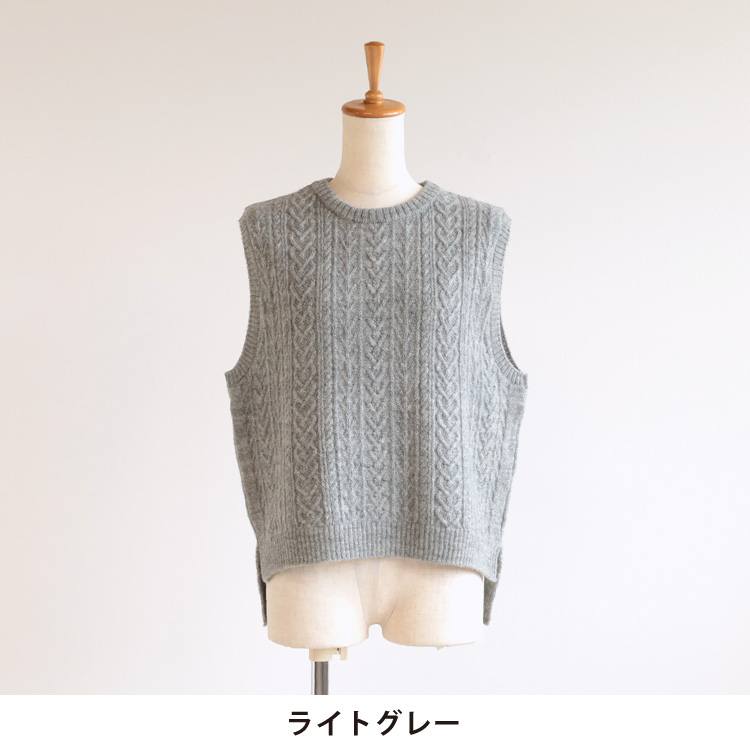 ナチュラルな素材感と編み柄が魅力のニットベスト。