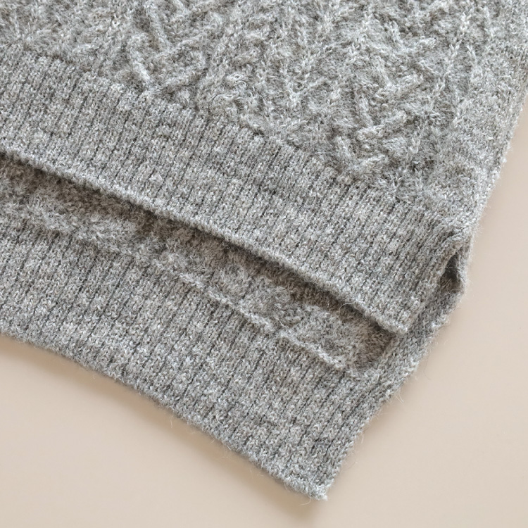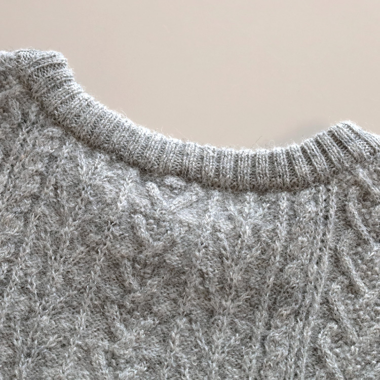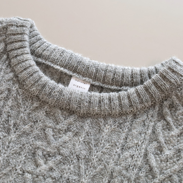 編み柄は、アラン模様と呼ばれるものです。ケーブルや木の枝のような編み柄が入っています。