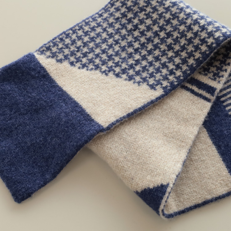 ネイビー寄りのブルー×アイボリーのしかく柄。