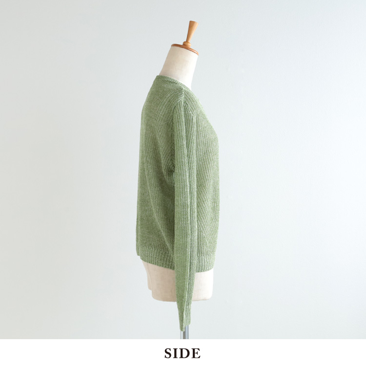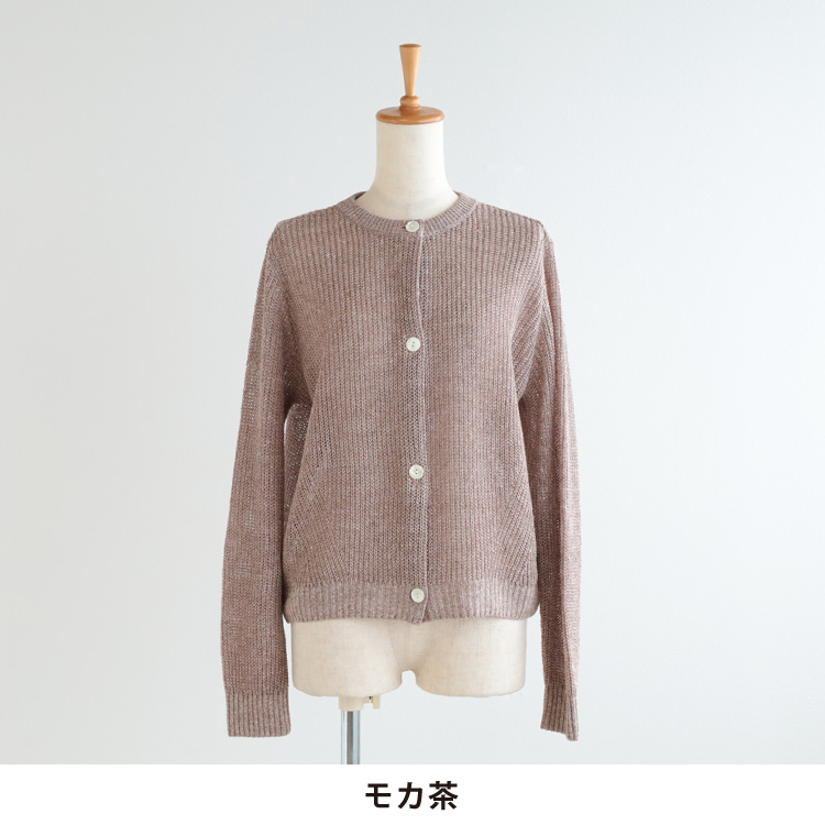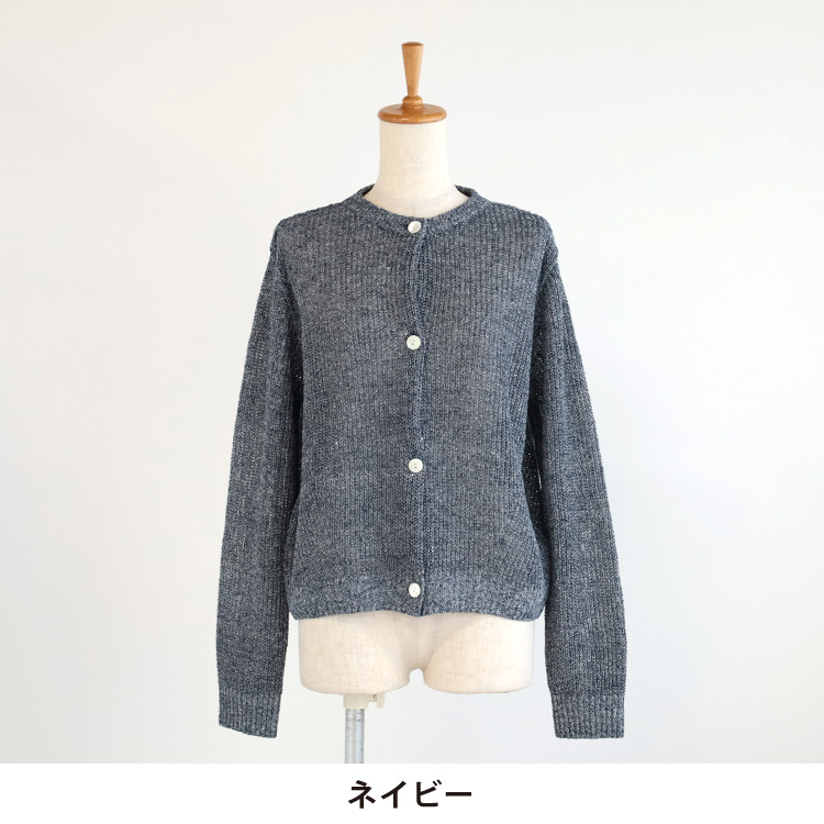 ノルマンディ産の一等亜麻と呼ばれる上質なリネンを使用した、ナチュラルさと上品さを併せ持つ、光沢のきれいなニットカーディガンです。
