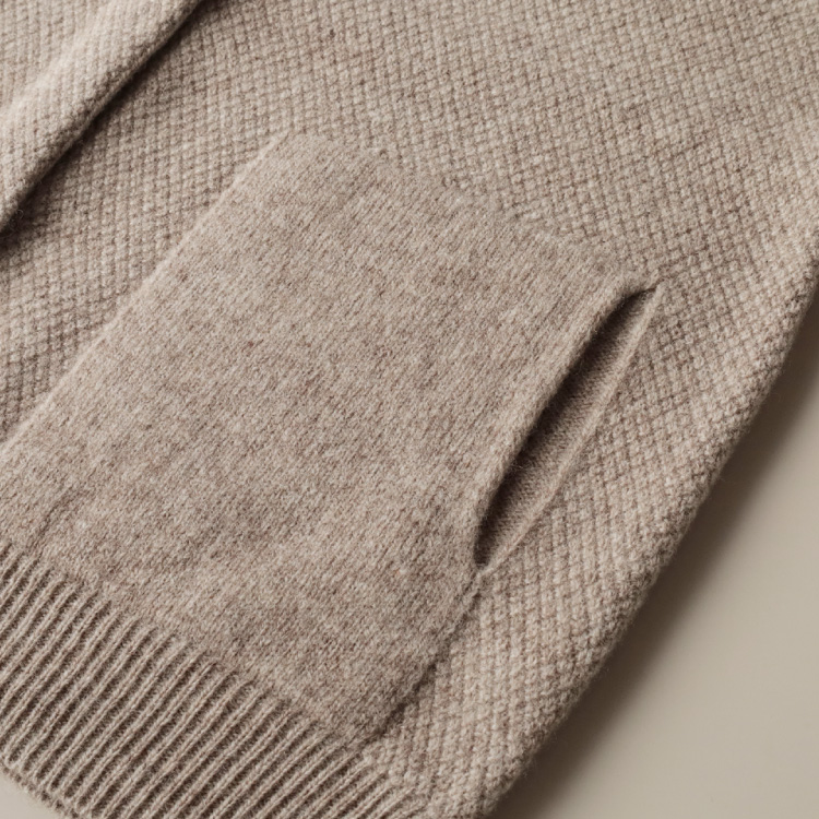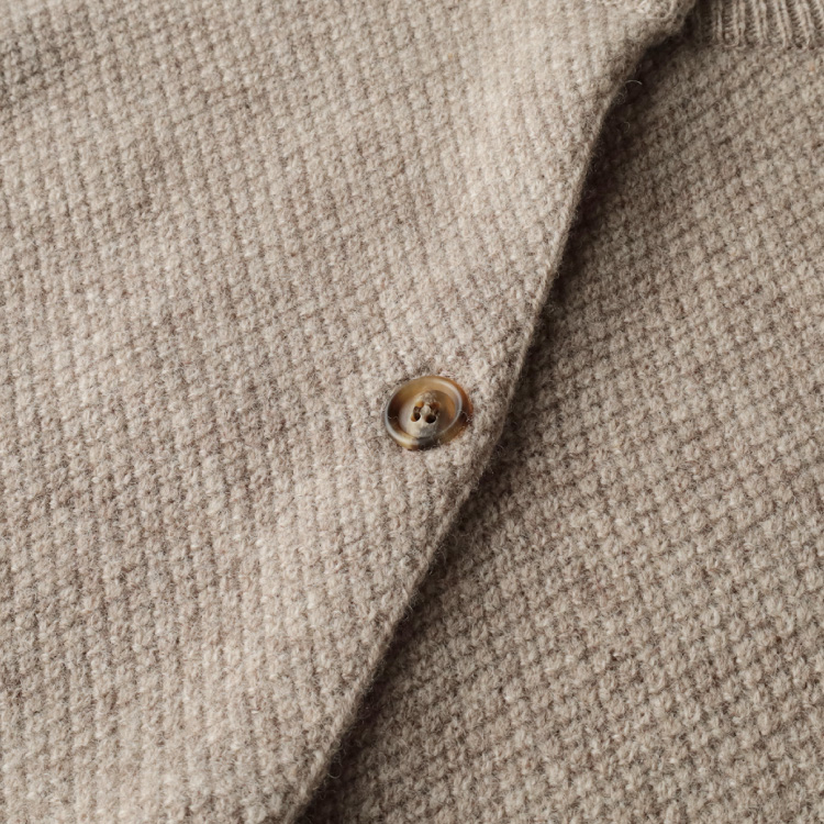 そんなこだわりの糸を使って、自社工場で丁寧に編んだカーディガン。