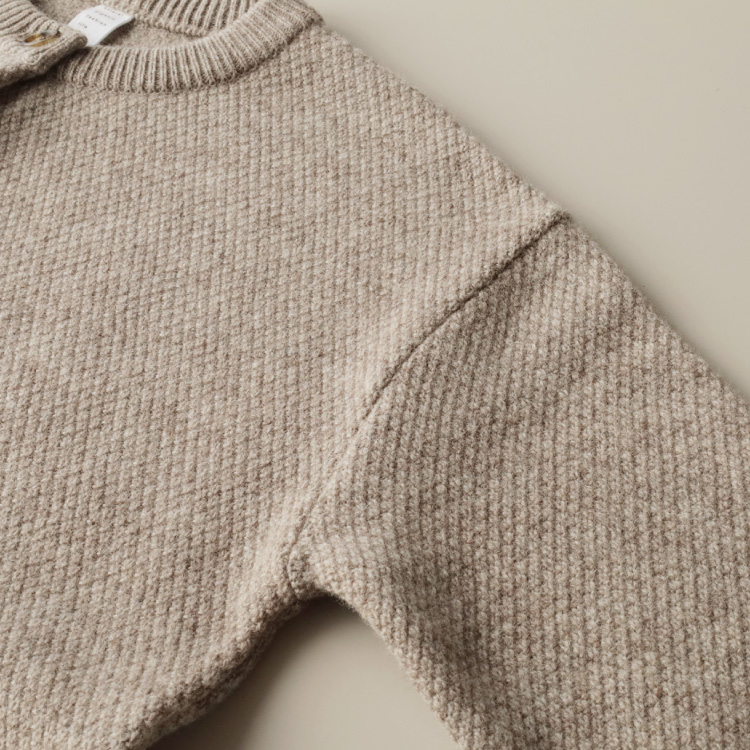 編み柄は、ポコポコとした表面が特徴の鹿の子編み。シンプルながら、さりげない表情が可愛いです。