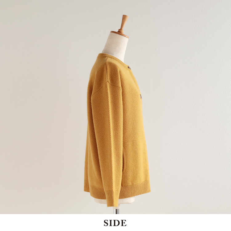 少しだけ肩をドロップさせ、程よくゆとりを持たせたベーシックなシルエットのカーディガンです。