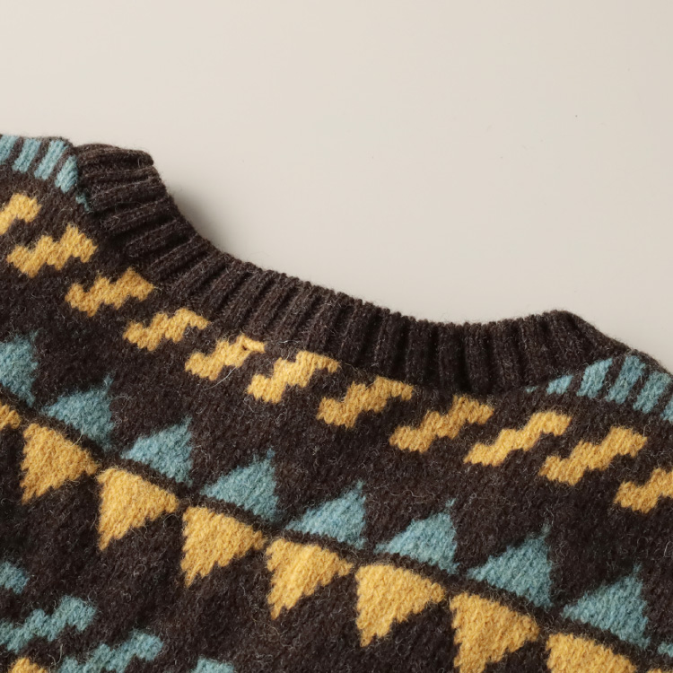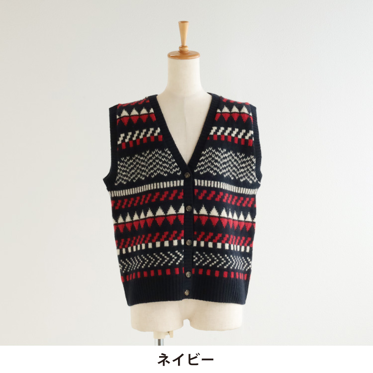 幾何柄が可愛い、ウールのニットベスト。