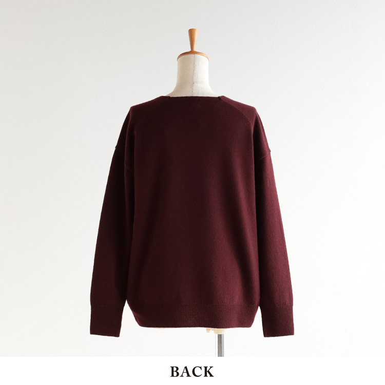 カシミヤに匹敵する保温性を持ち、軽くてソフトな風合いが魅力の高級ウール糸で編み上げたVネックプルオーバーです。