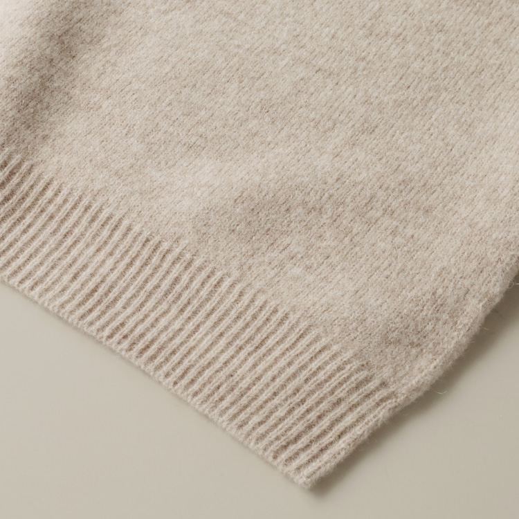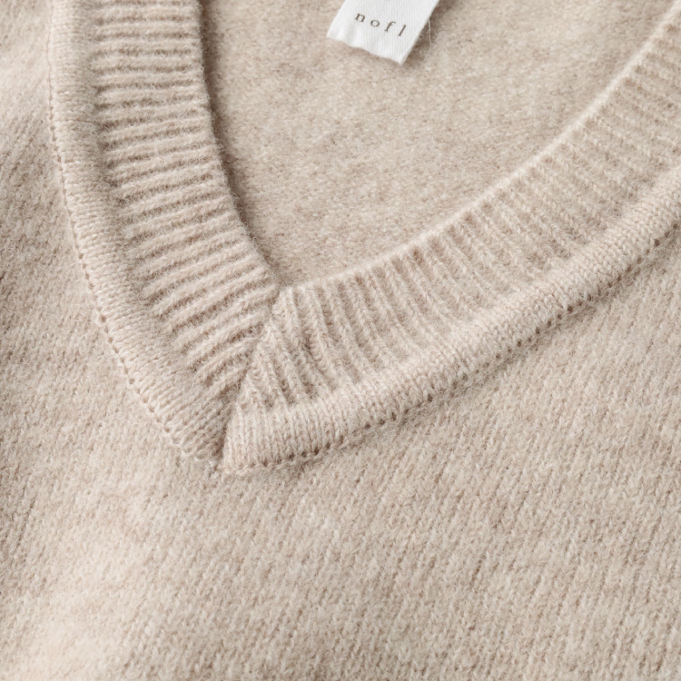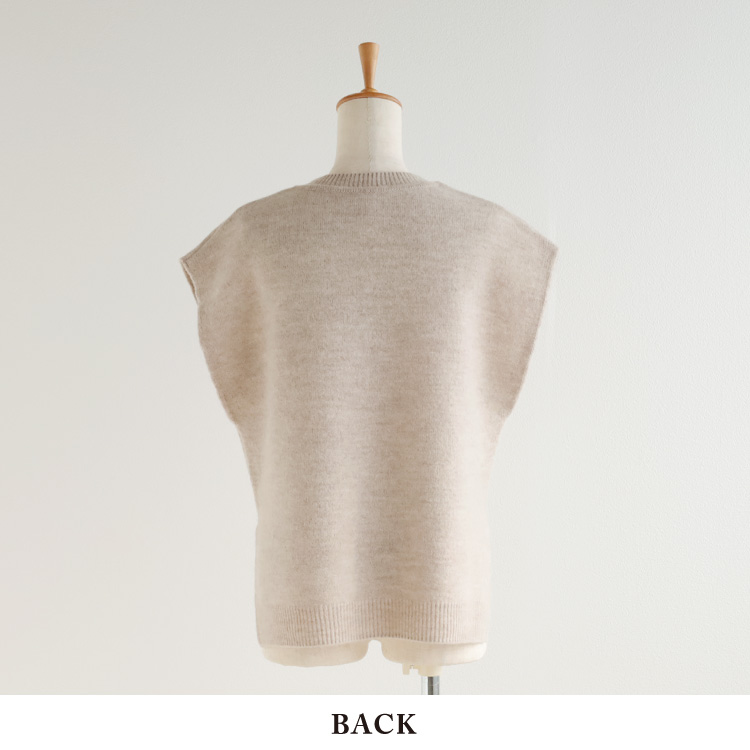 ウールとロイヤルベビーアルパカをミックスした糸を使用した、柔らかくふんわりとした肌ざわりのニットベストです。