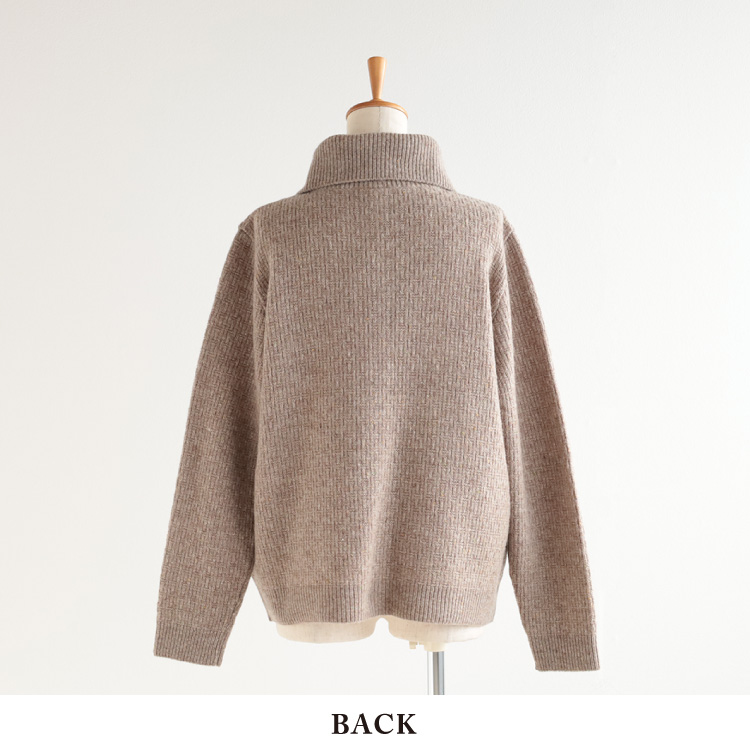 弾力性に富み、やわらかな肌ざわりが特徴のクーマラムの7Gの糸を、バスケットのような柄に編み、よりふっくらとした肌ざわりを味わえるニットに仕上げました。