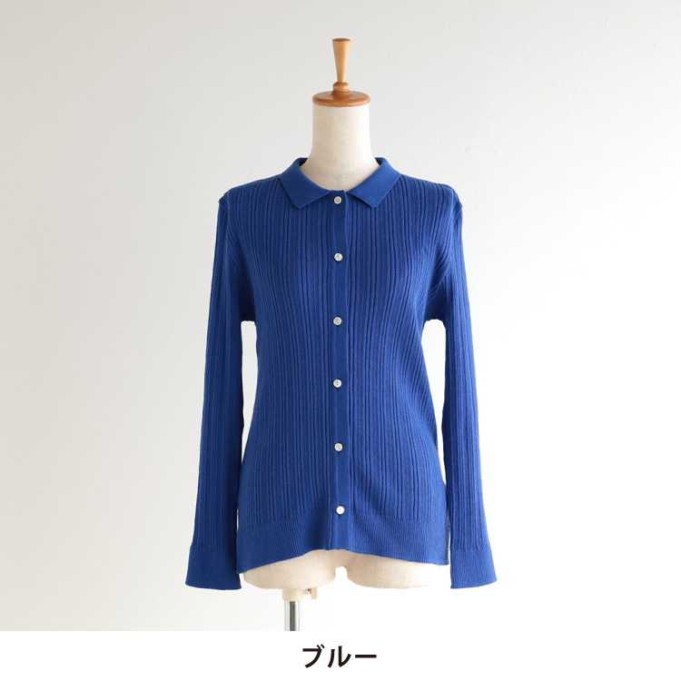 ふんわりやさしい肌触り、オーガニックコットンの襟付きカーディガン。