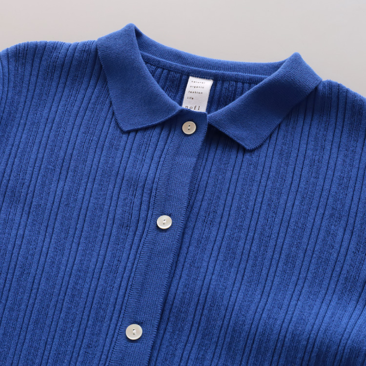 ノフルで人気のオーガニックコットンランダムリブの編地で仕立てたニットカーディガンです。