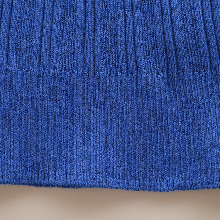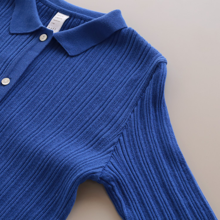 細いリブと太いリブが組み合わされた、ふっくらとした編地が、オーガニックコットンのやわらかな素材感とマッチしています。