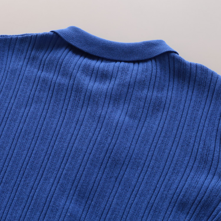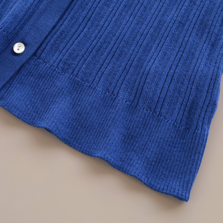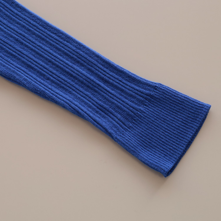 鮮やかですが深みも感じる、きれいな発色の上品なブルーです。重ね着で、コーディネートのアクセントに使うのもおすすめです。