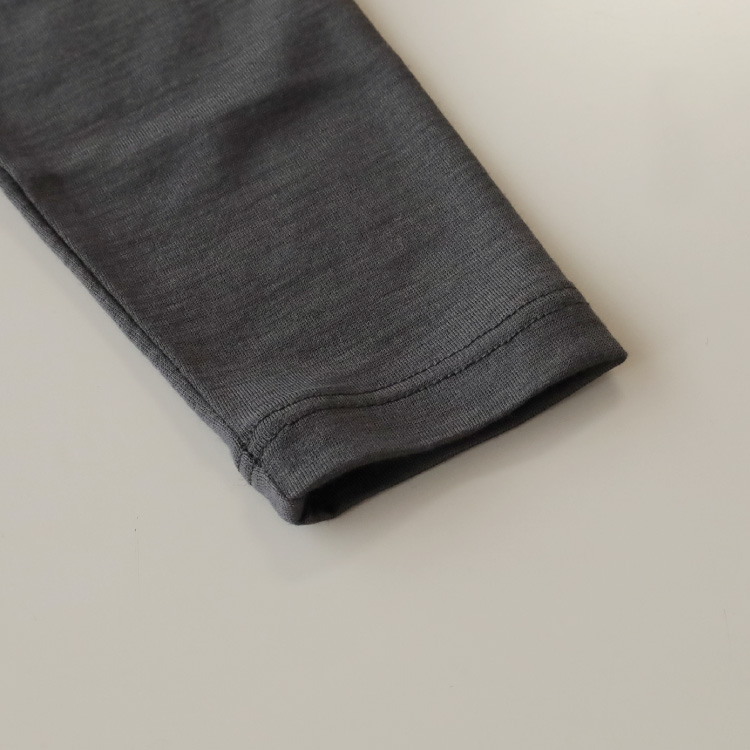 ウール100%といっても滑らかな生地感で、素肌に触れても、そこまでチクチクするということはないですが、敏感な方は、長袖の肌着などを中に重ねての着用をおすすめします。
