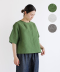 noflの定番デザインのブラウスを、風合い豊かな天日干し仕上げの綿麻生地で作りました。