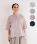 ちなみに、こちらのブラウスは、当店で人気の天日干し衿付きブラウスと同じ形なのですが、生地が変わっただけで、ガラッと違う雰囲気になりますね。
