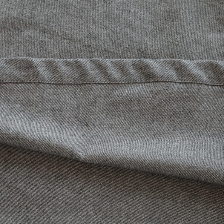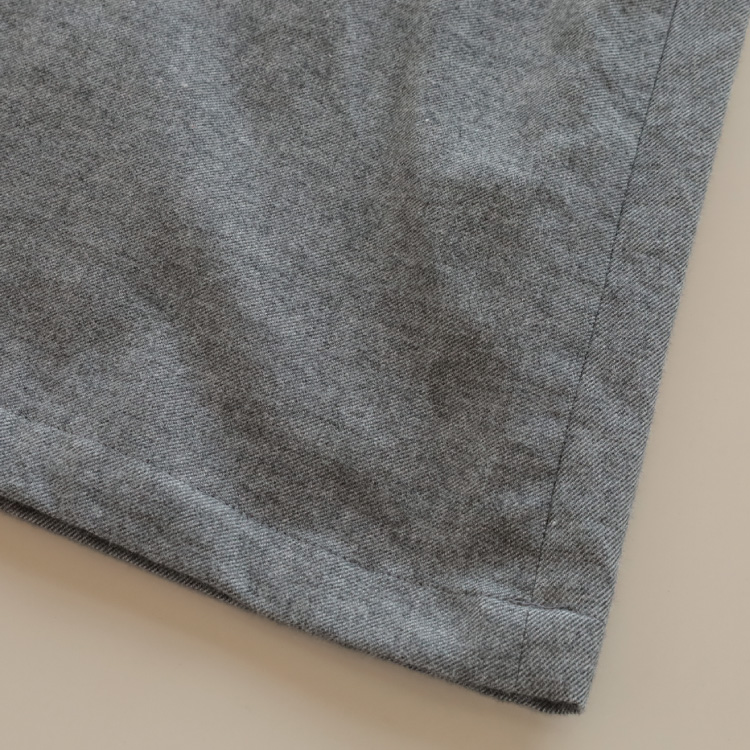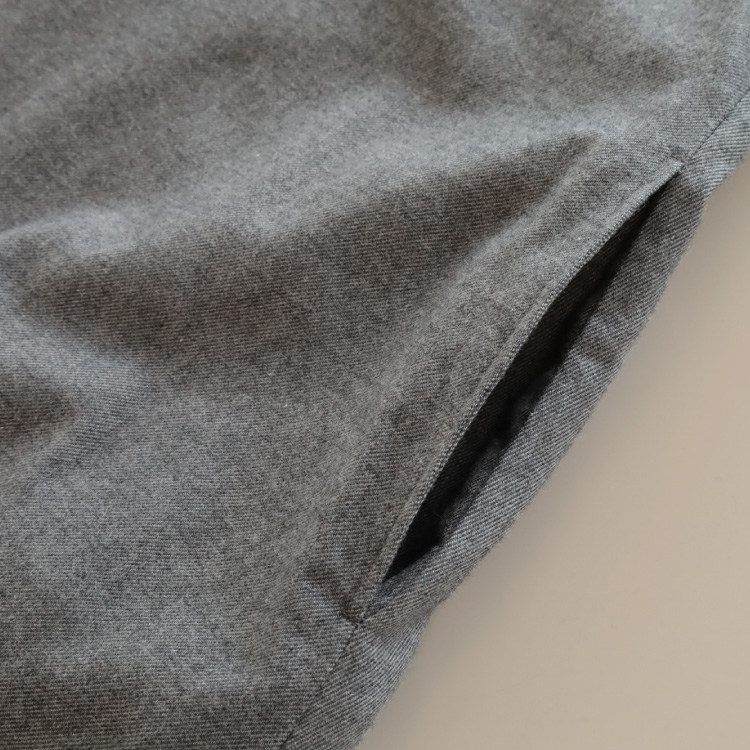 そのオーガニックコットンを甘撚りにした糸を使用し、綾織りにした生地に、微起毛加工を施すことにより、さらにエアリー感、柔らかさを出しています。