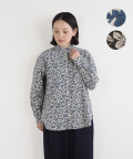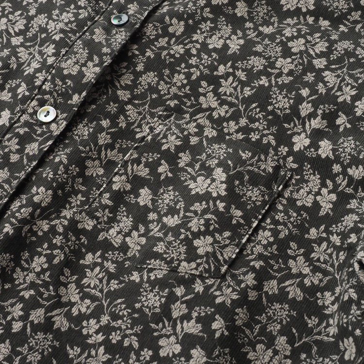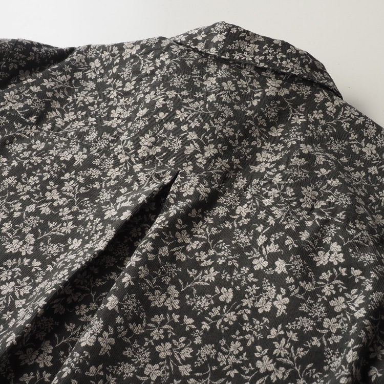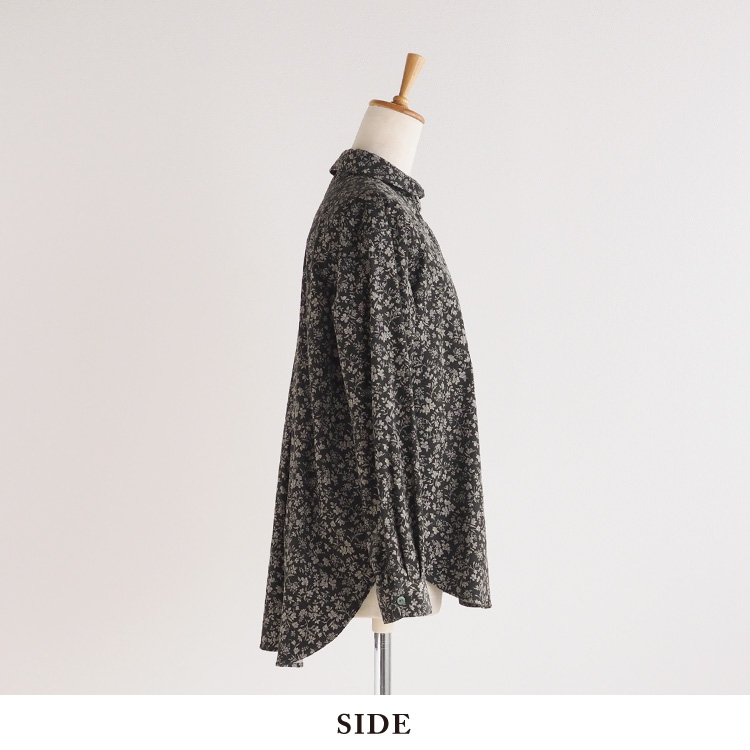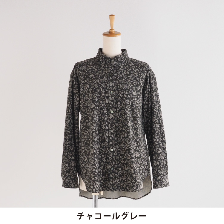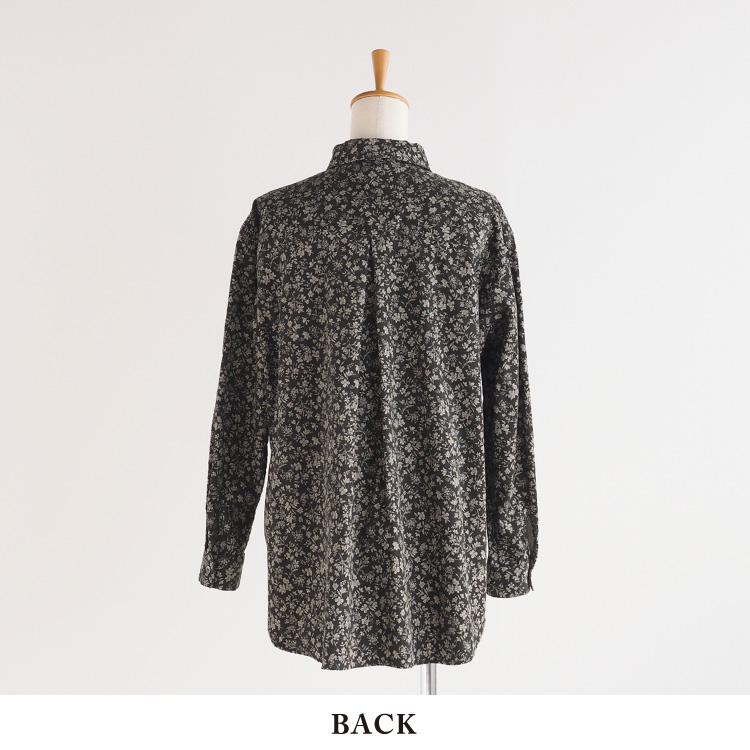 小花柄が上品な、コーデュロイのラウンドカラーシャツ。