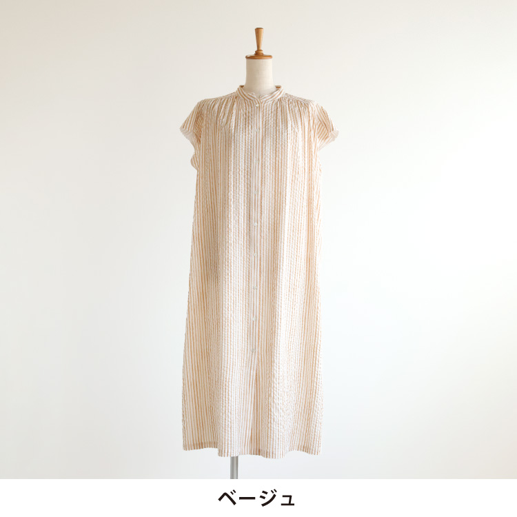 爽やかに着こなせる、涼感ストライプの前あきワンピース。