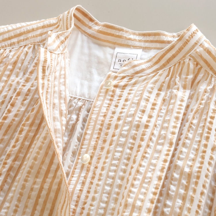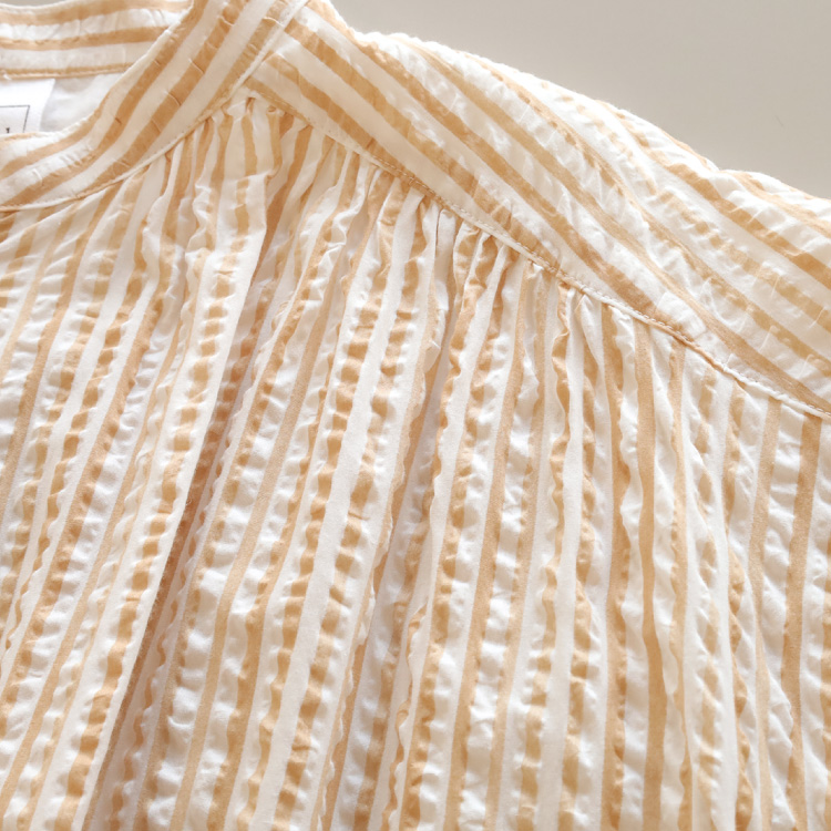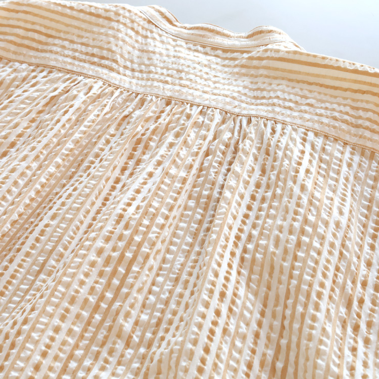 波打つようなストライプ柄が印象的な、綿ローンリップル生地を使用しています。
