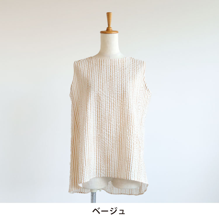 爽やかな、波打ちストライプ柄のノースリーブブラウス。