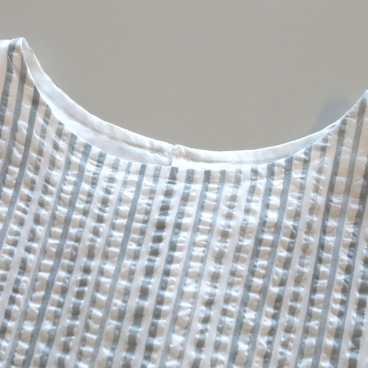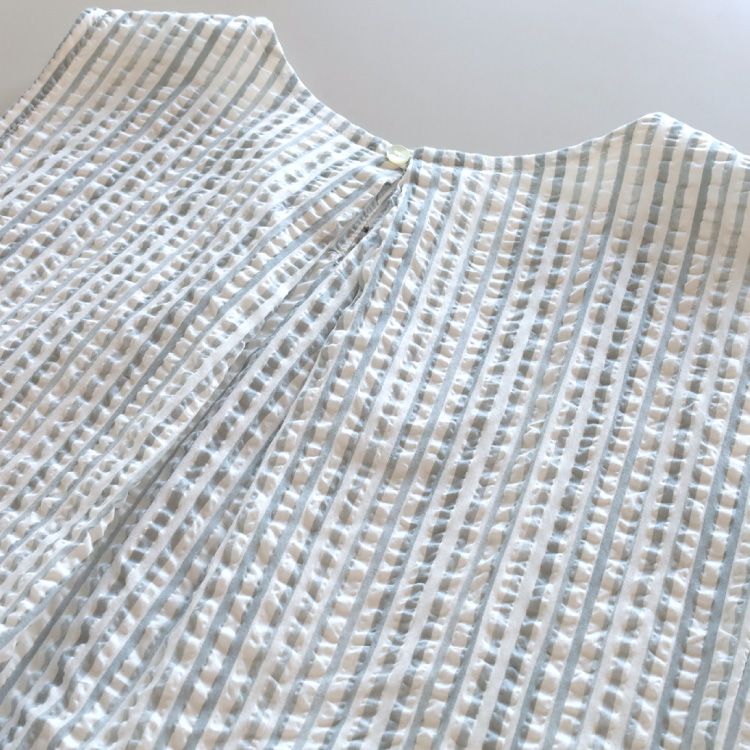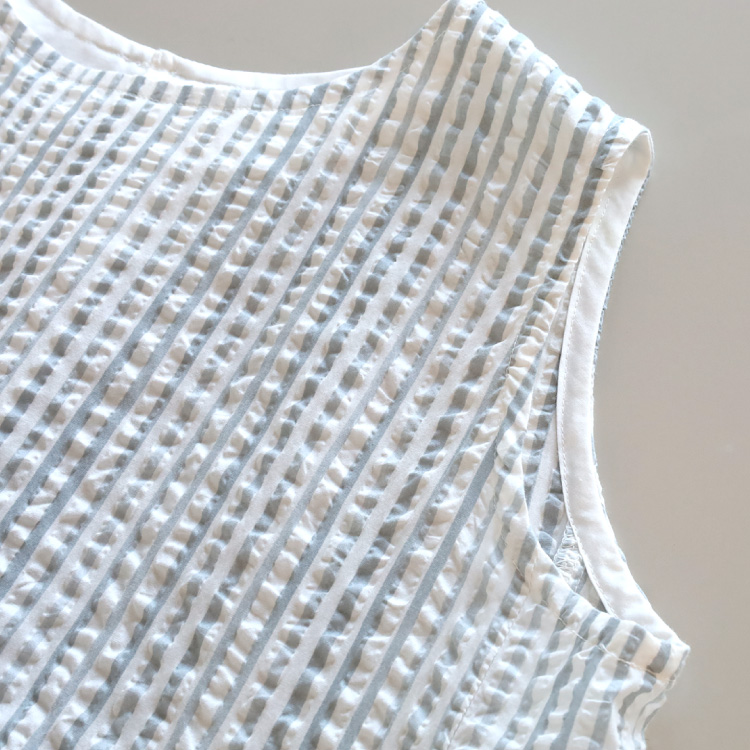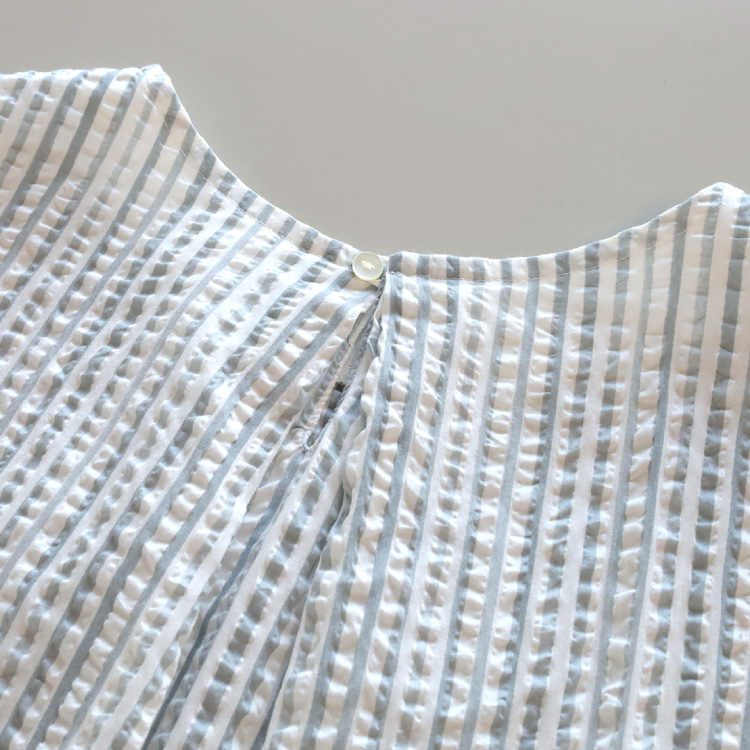 波打つようなストライプ柄が印象的な、綿ローンリップル生地を使用しています。