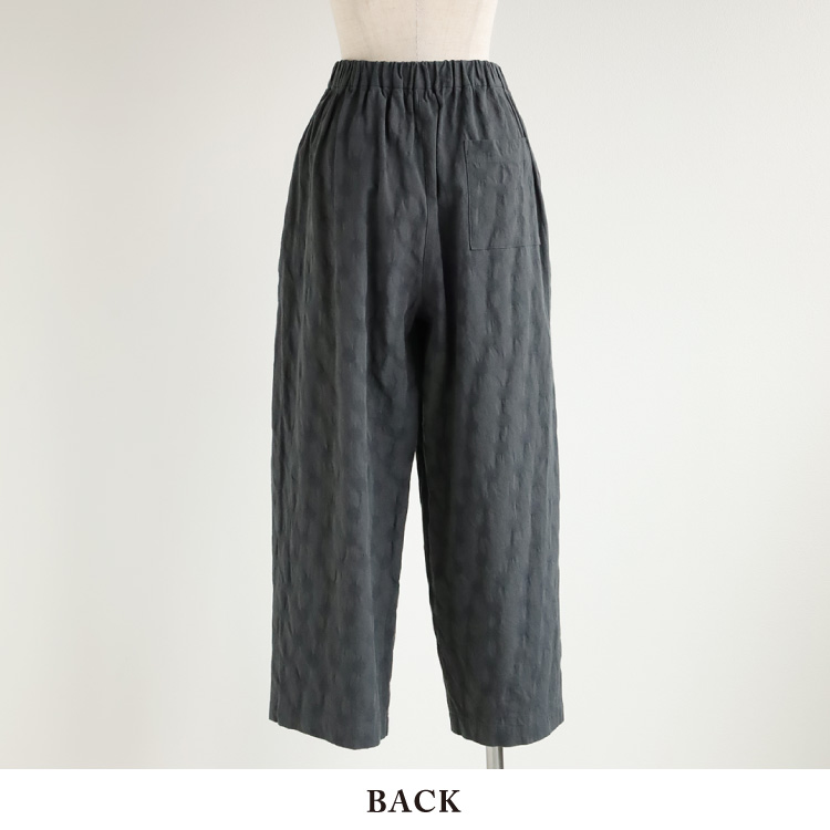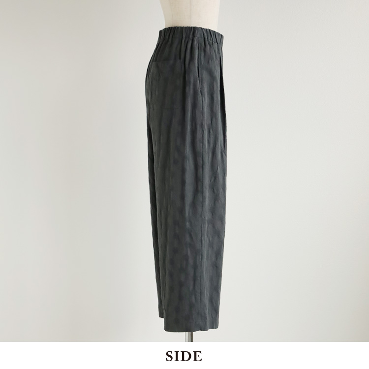ジャガード織の綿麻生地を使用したパンツです。