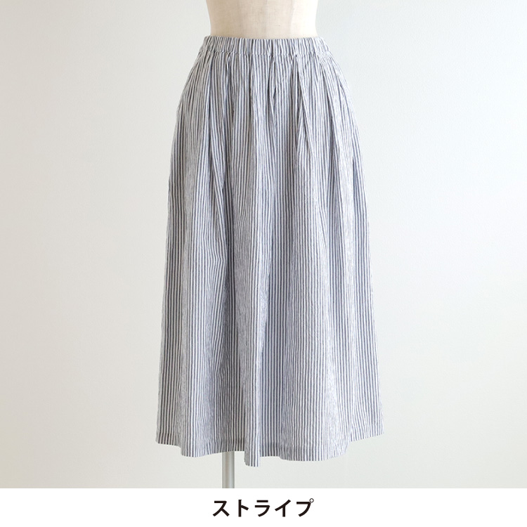 チェック&ストライプ柄が程よく甘い、ふわりタックスカート。