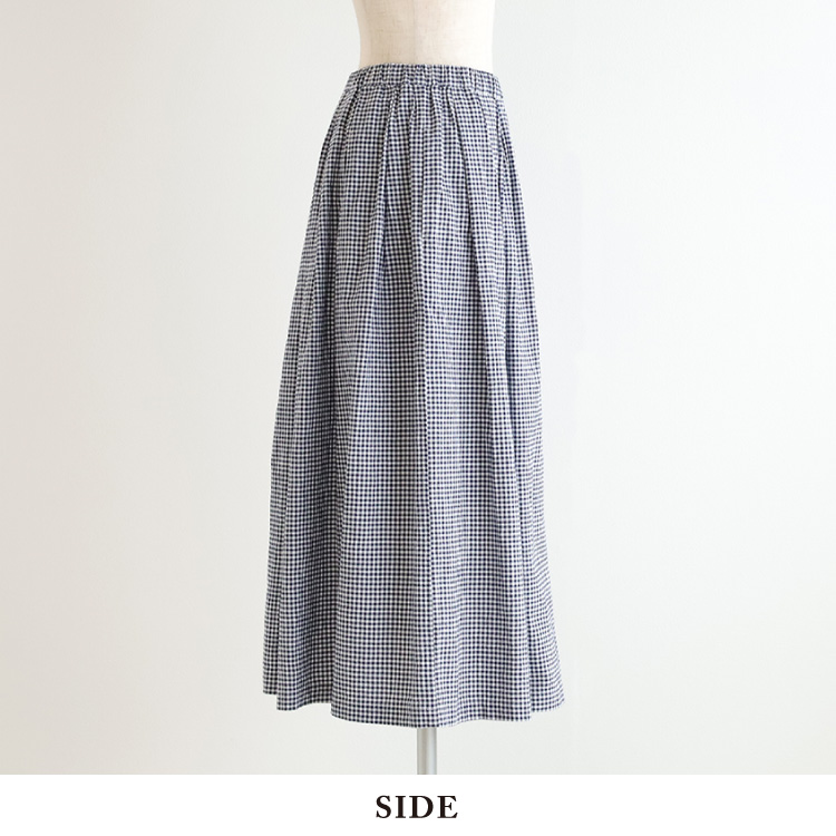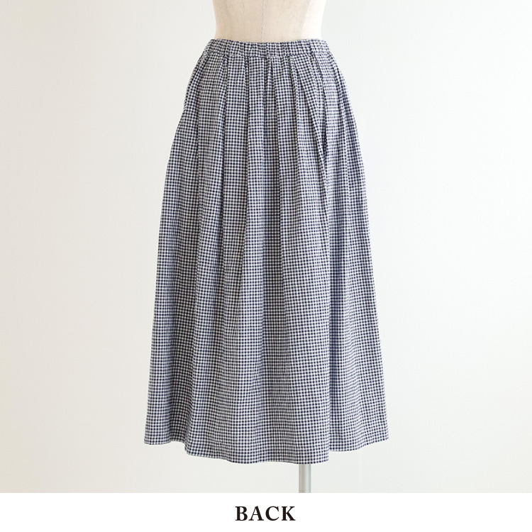 こちらのスカートは、フロント、バックとも、ウエストにタックが入っており、分量感がありながら、広がりすぎないシルエットが特徴です。