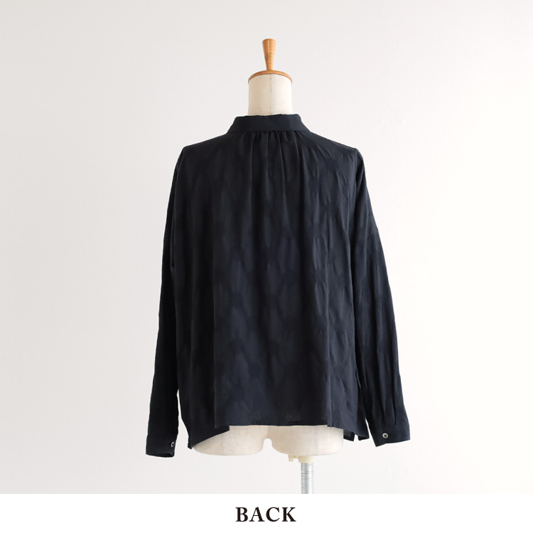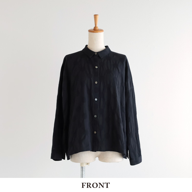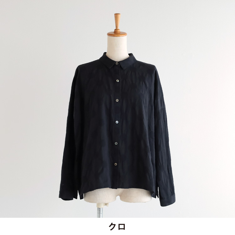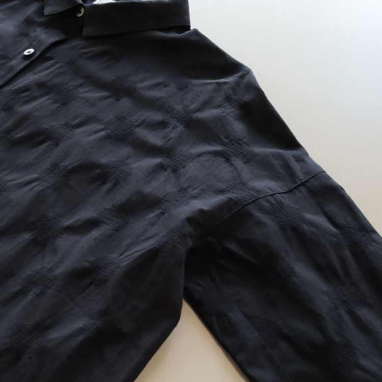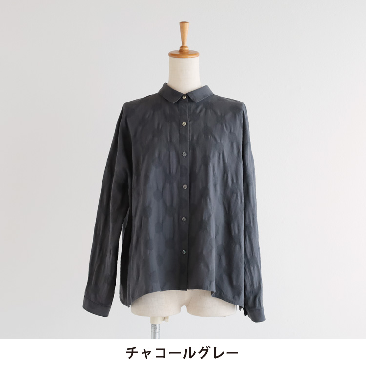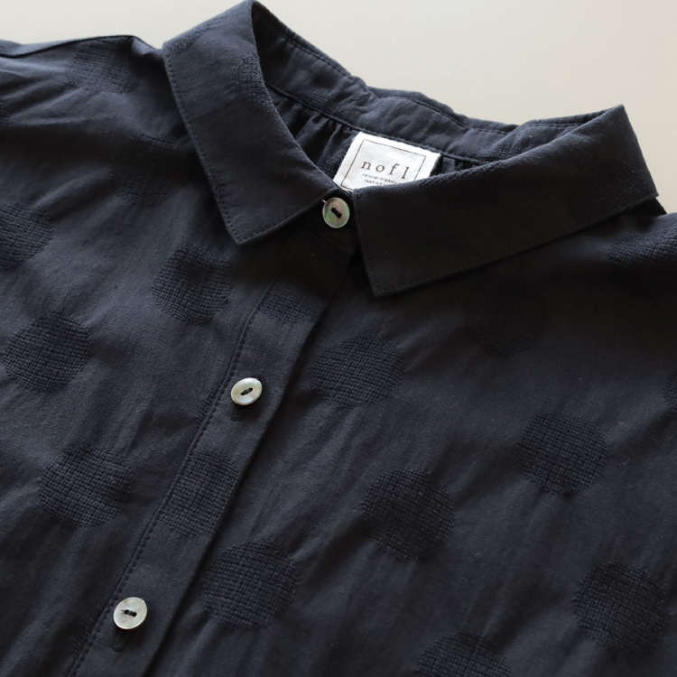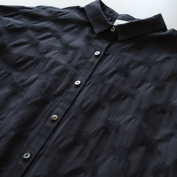 ジャガード織のドット柄とシボ感が印象的な綿麻生地を使用したブラウスです。