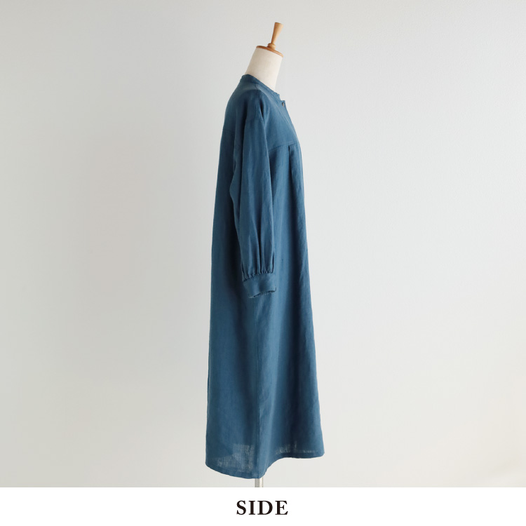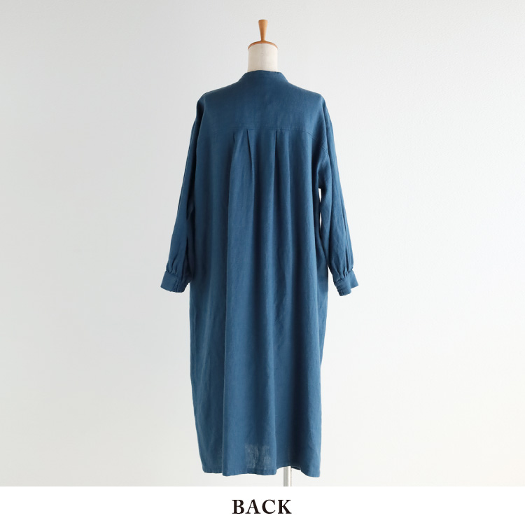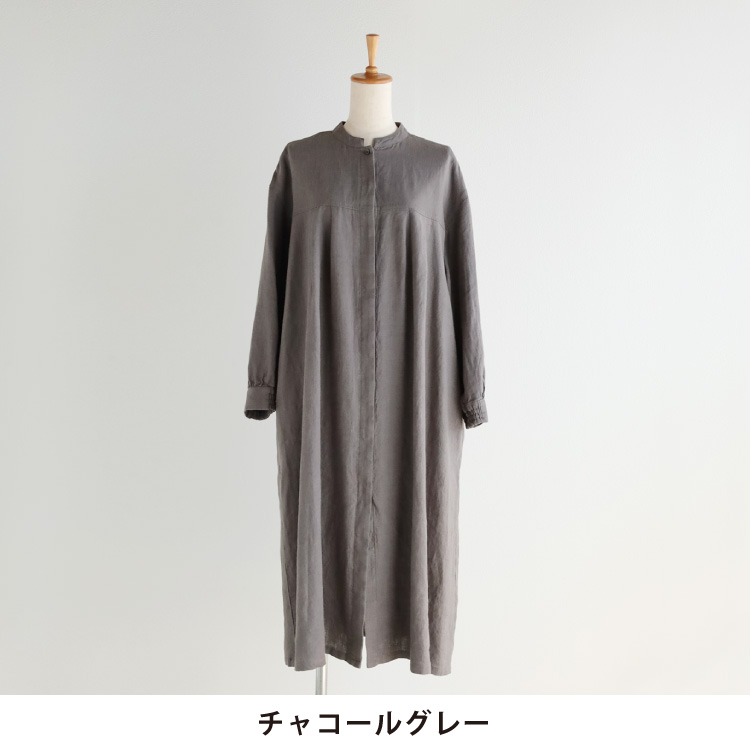 ボリューム感が上品な、リトアニアリネンの前あきワンピース。