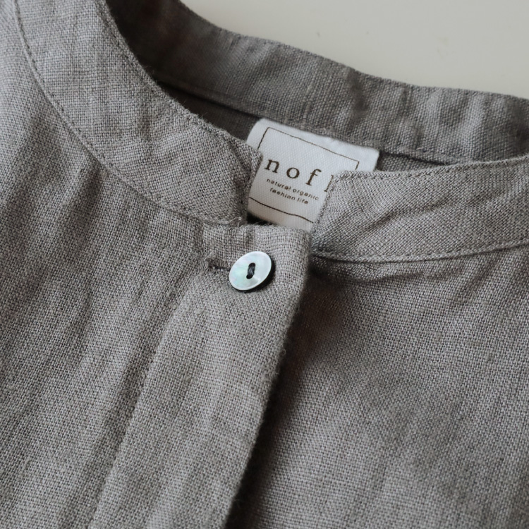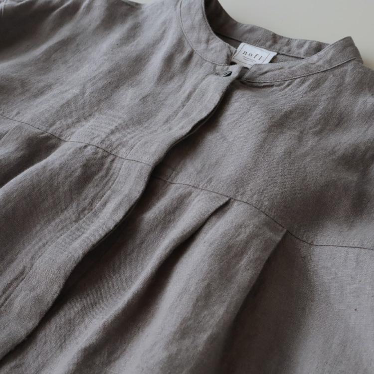 ノフルこだわりのリトアニアリネン生地を使用した、前あきワンピース。