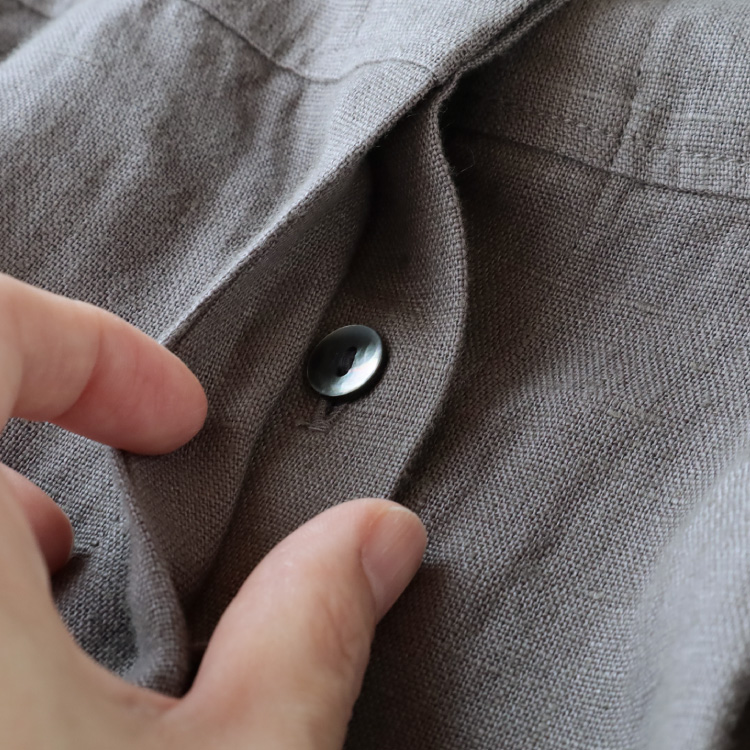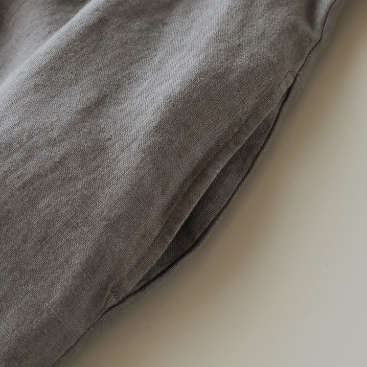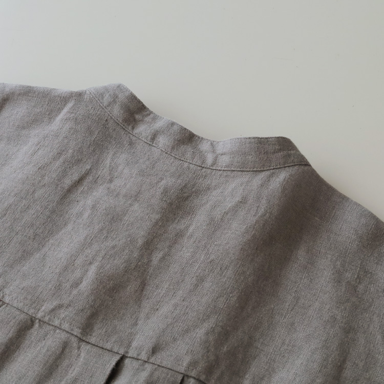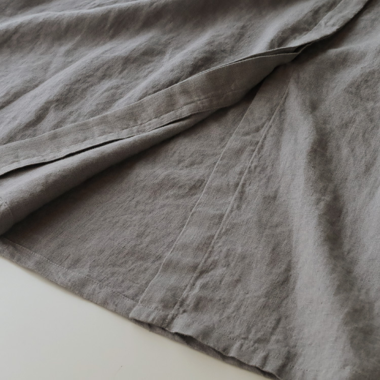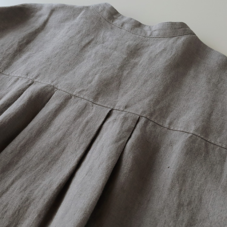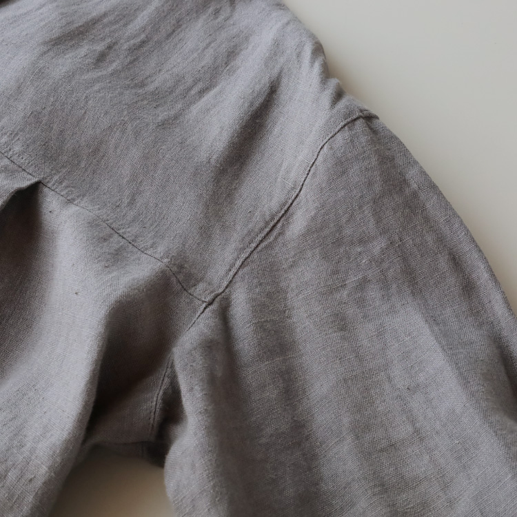 くったりとした落ち感のあるリネン生地ですので、ボリューム感がありながらも広がりすぎず、すっきりと着こなしていただけます。