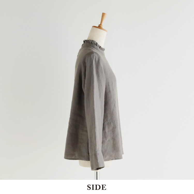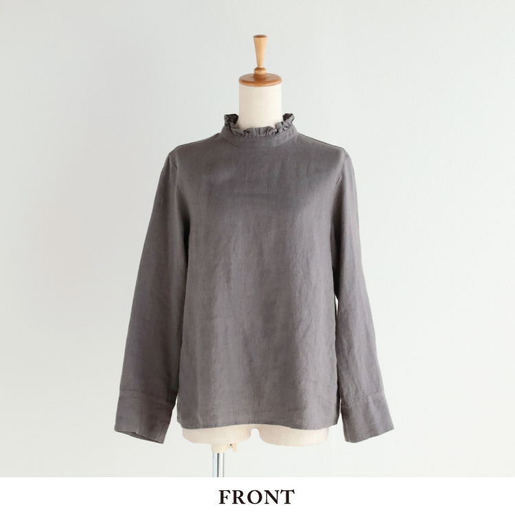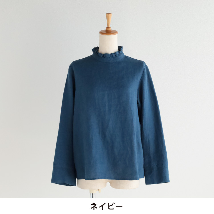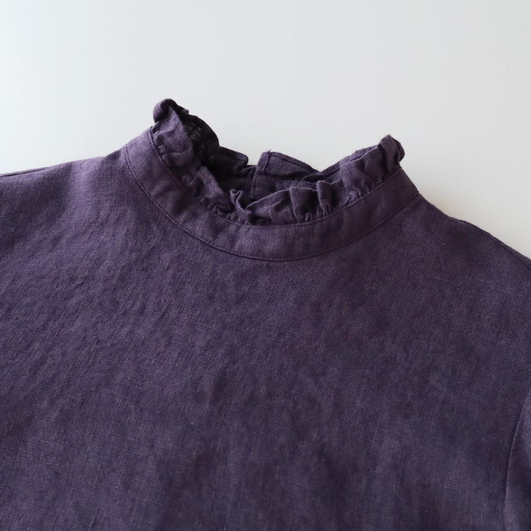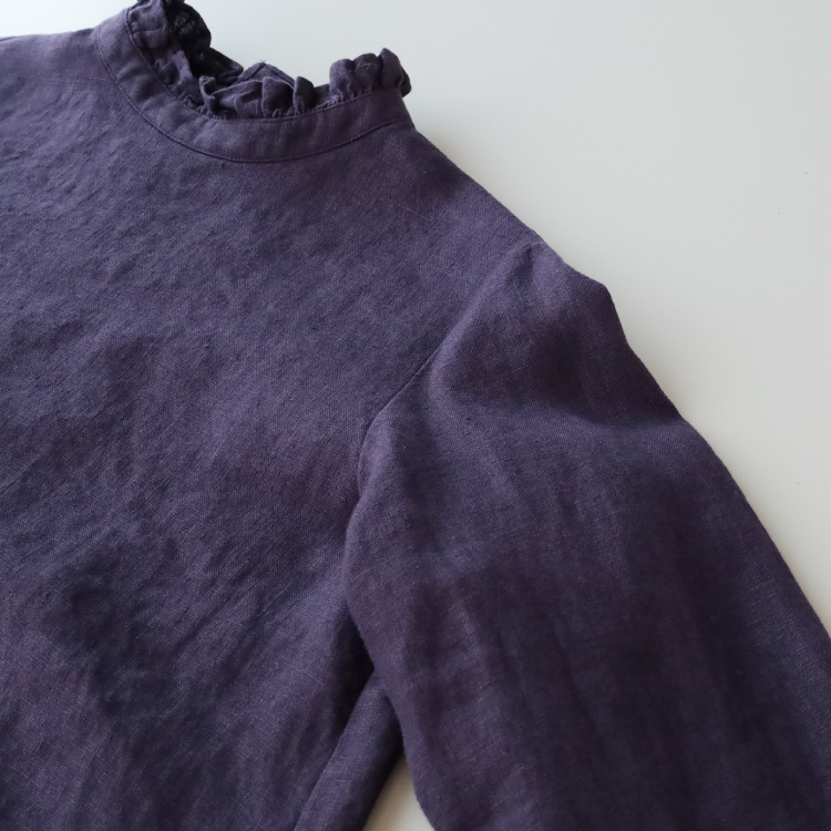 シックで上品な、リトアニアリネンのフリル襟ブラウス。