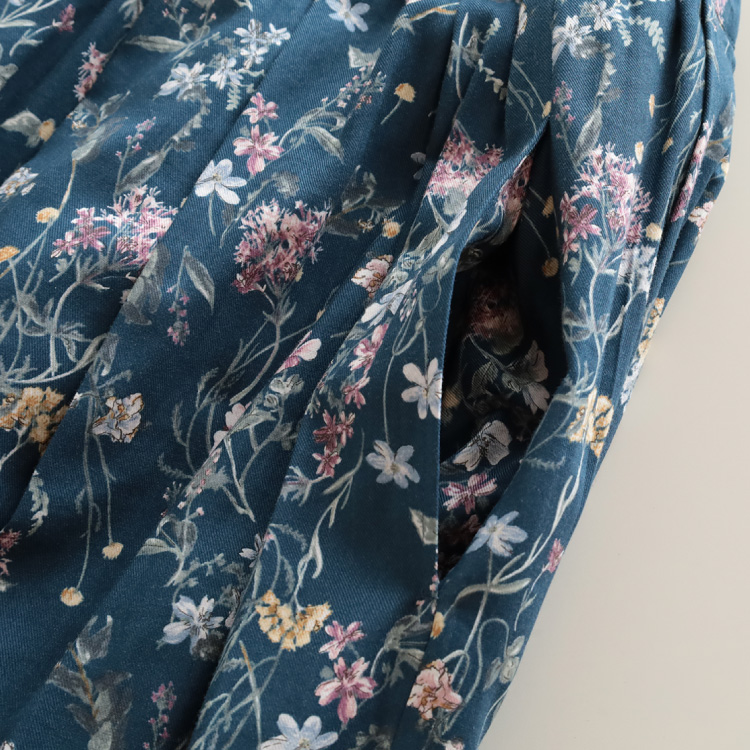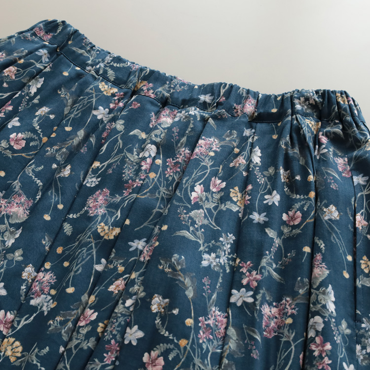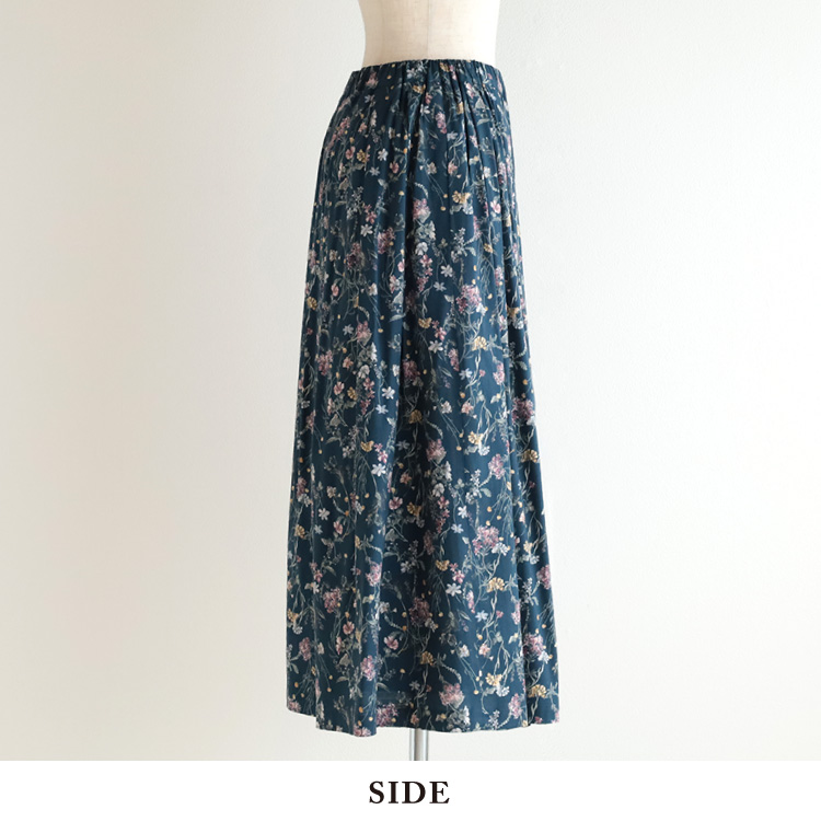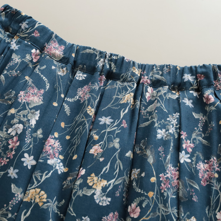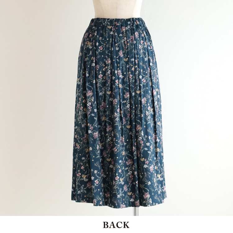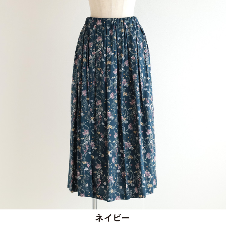 繊細な花柄がフェミニンな印象を添える、ビエラ素材のタックスカートです。