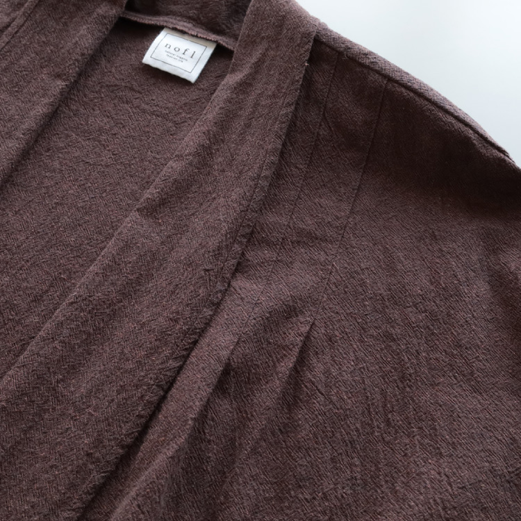 前釦のない着流しタイプで、さらりと羽織れるロングガウンです。