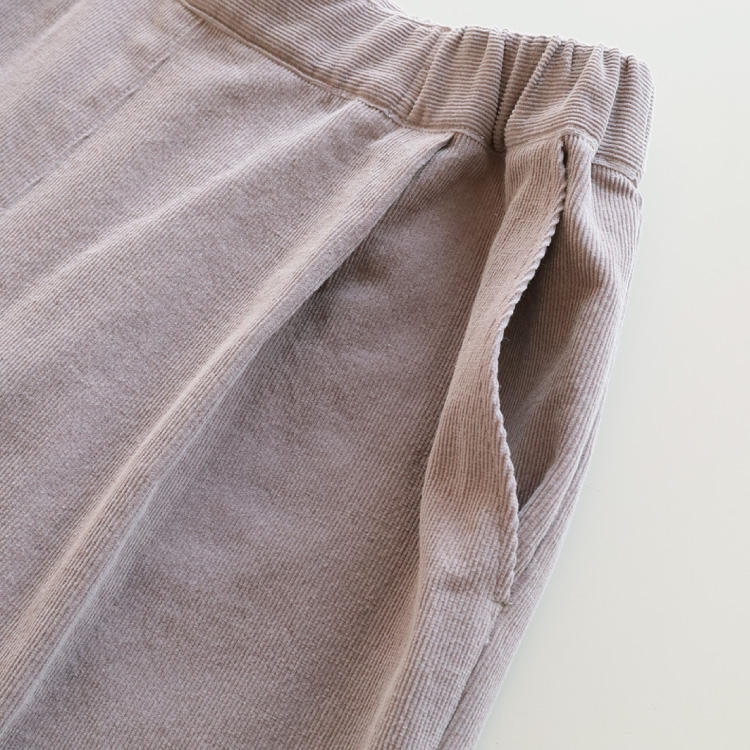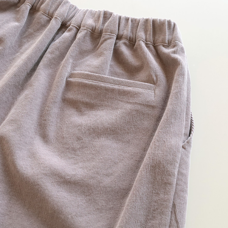 荒炊き染めのコール天生地を使用した、やわらかでやさしい風合いのパンツです。