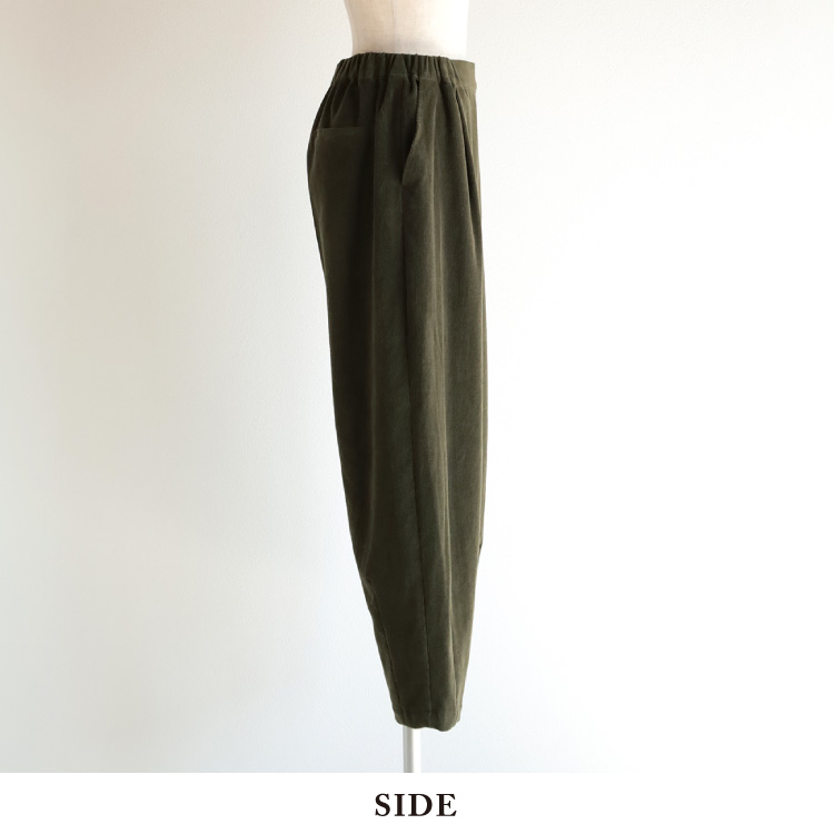 やさしい風合いのコール天テーパードパンツ。