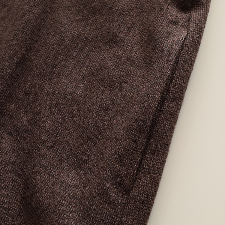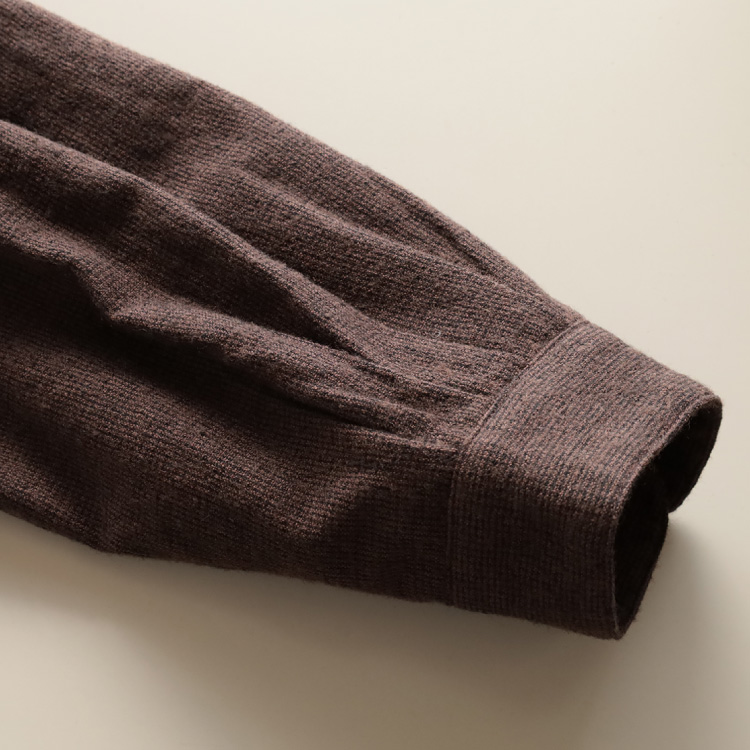 ウール混ならではのあたたかみを感じる素材ですが、素肌に触れる部分は、敏感肌の方にはややチクチク感を感じることがありますので、インナーを重ねての着用をおすすめします。