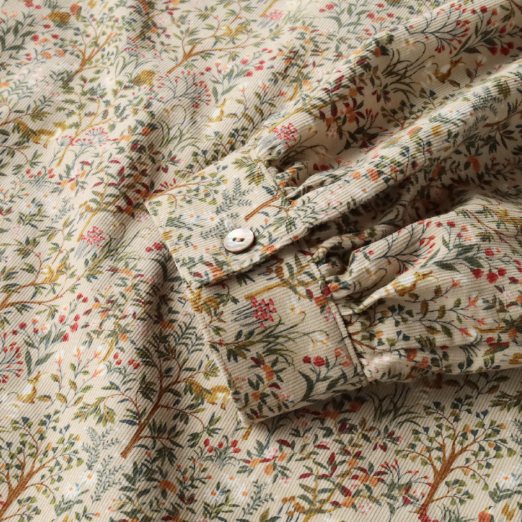 同じ素材のプルオーバーシャツです。 - ▶ 【nofl】コーデュロイforest柄Aラインスカート