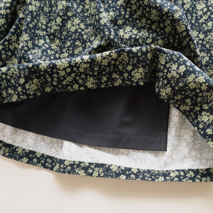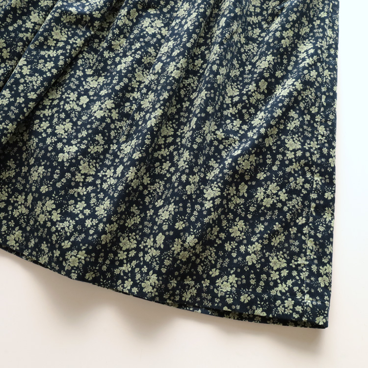 シックな小花柄が目をひく、コーデュロイのスカート