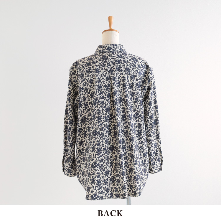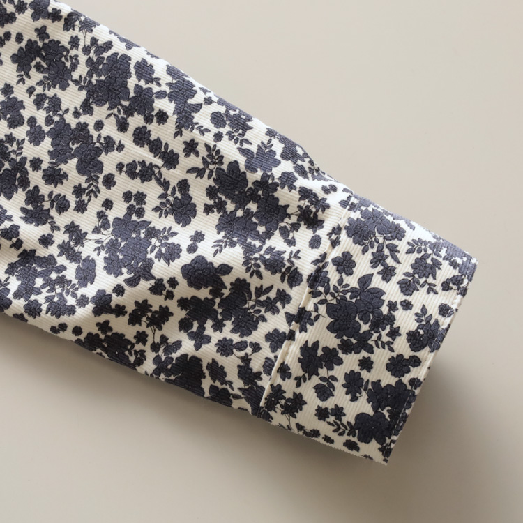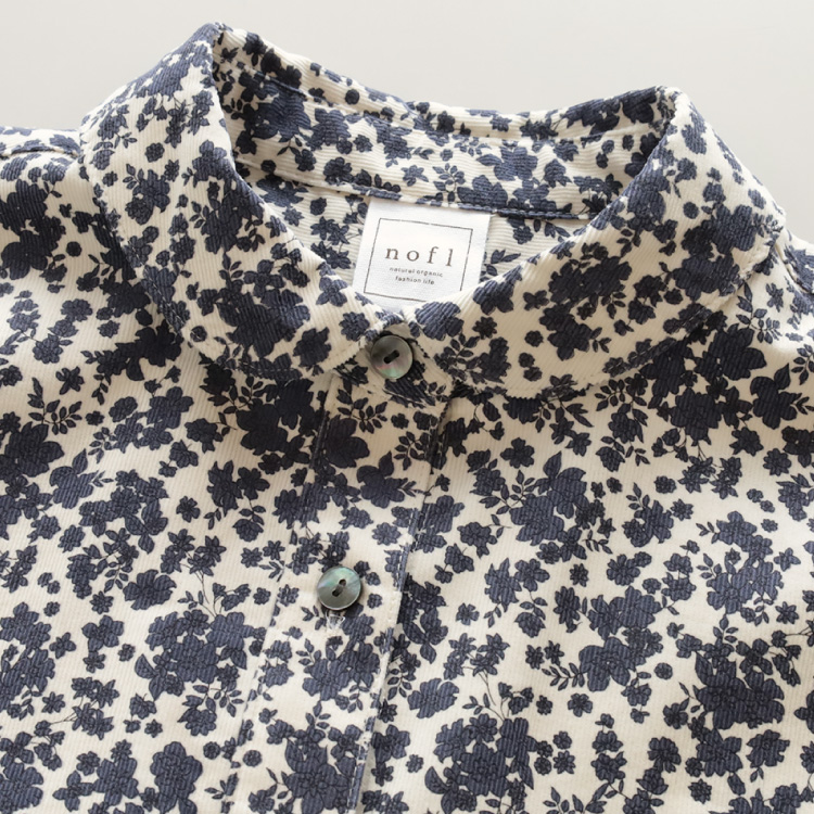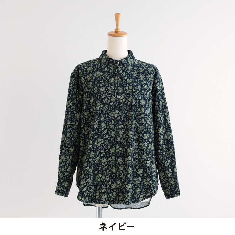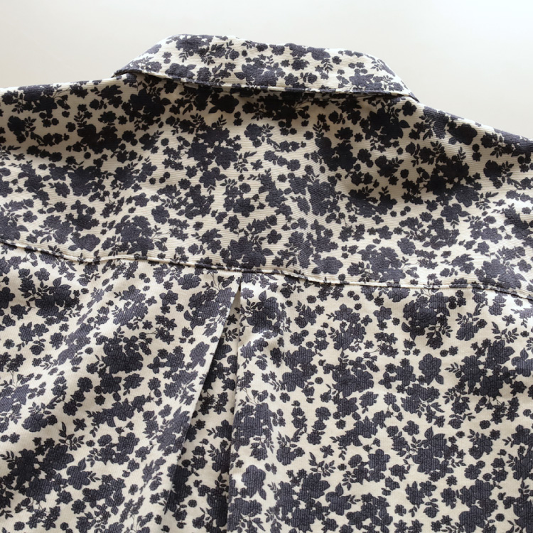 小花柄が上品な、コーデュロイのラウンドカラーシャツ。