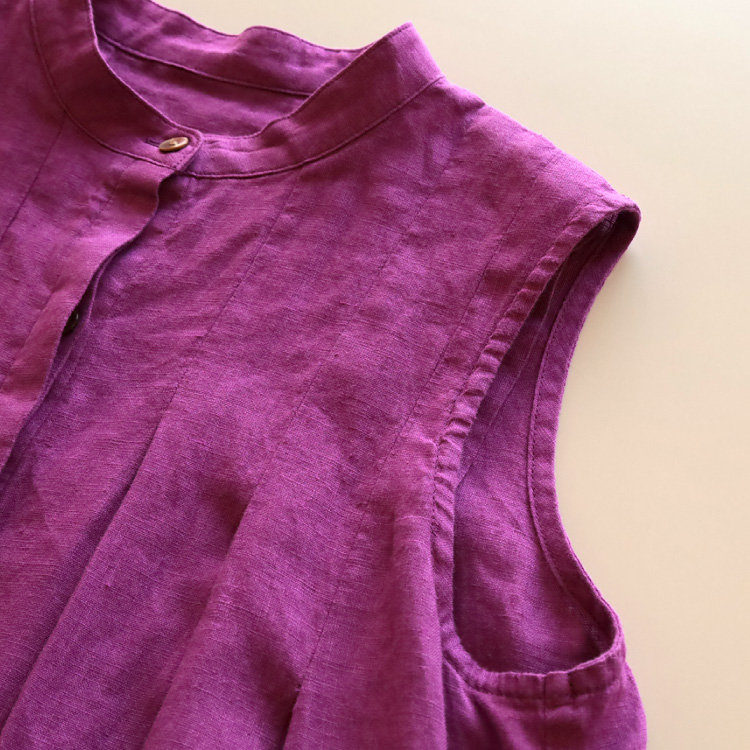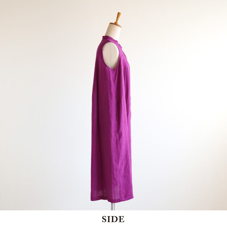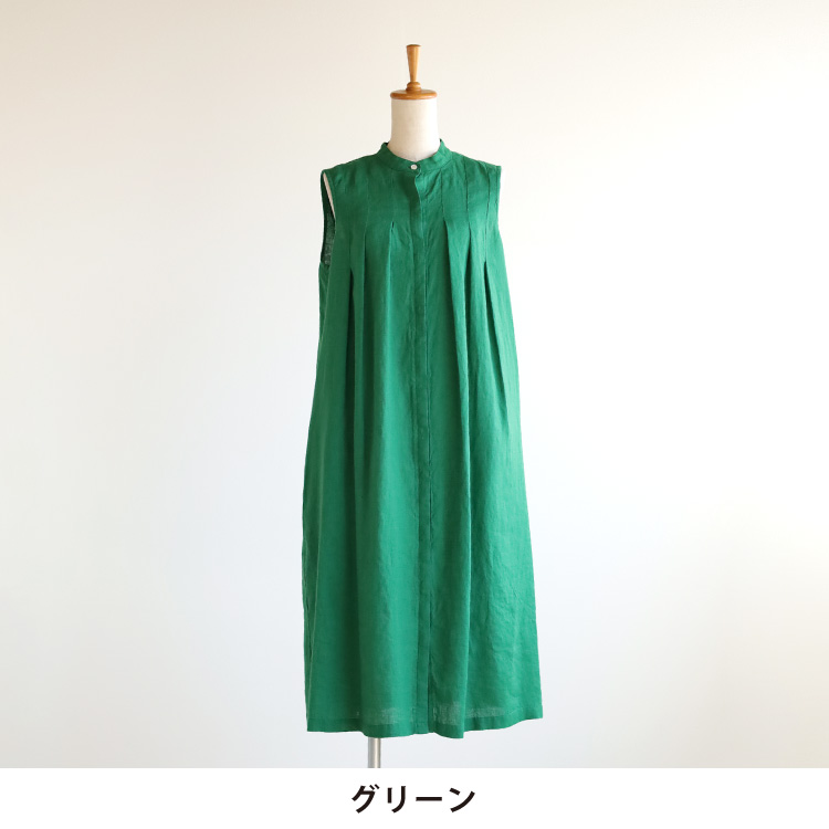 当店こだわりのリトアニアリネンを使用した、前あきノースリーブワンピースです。