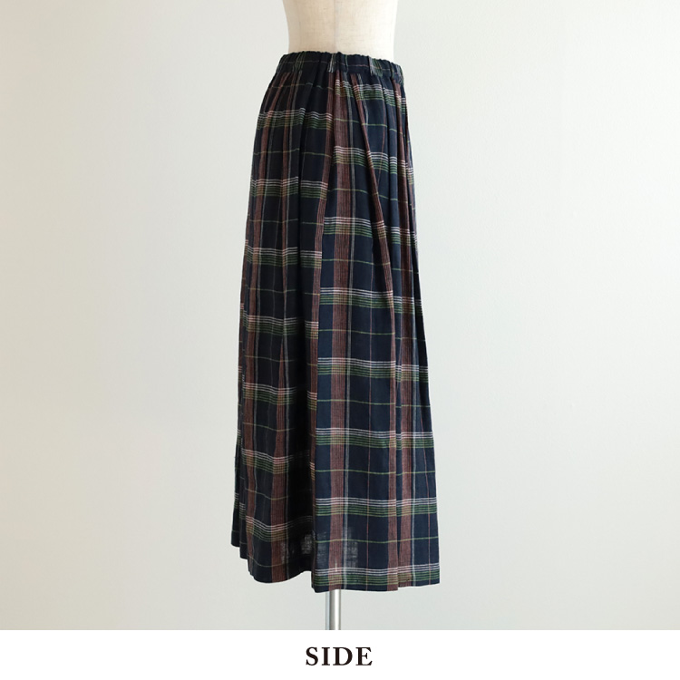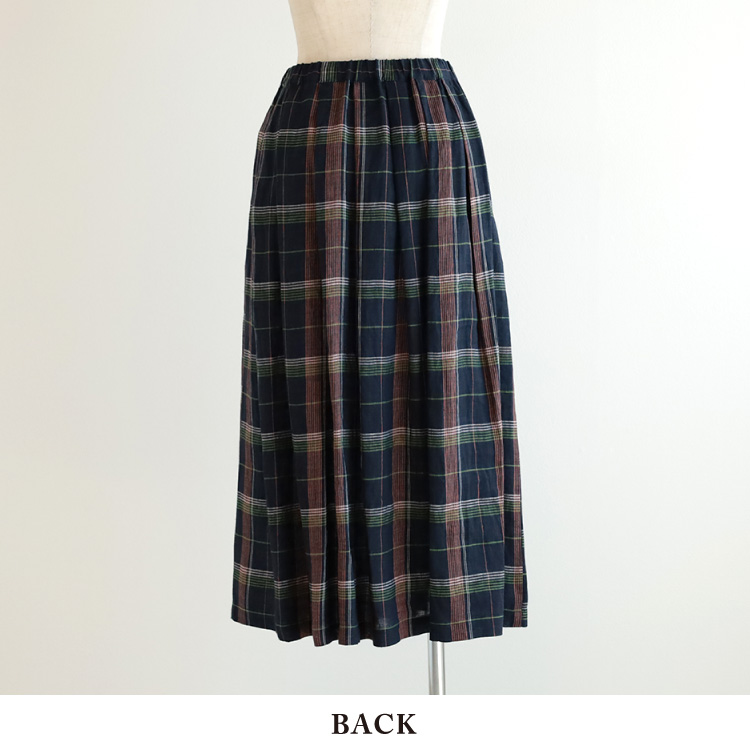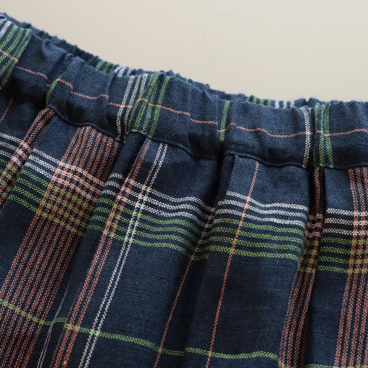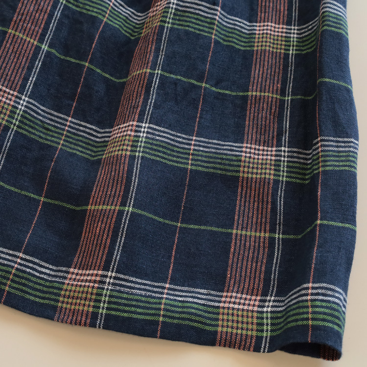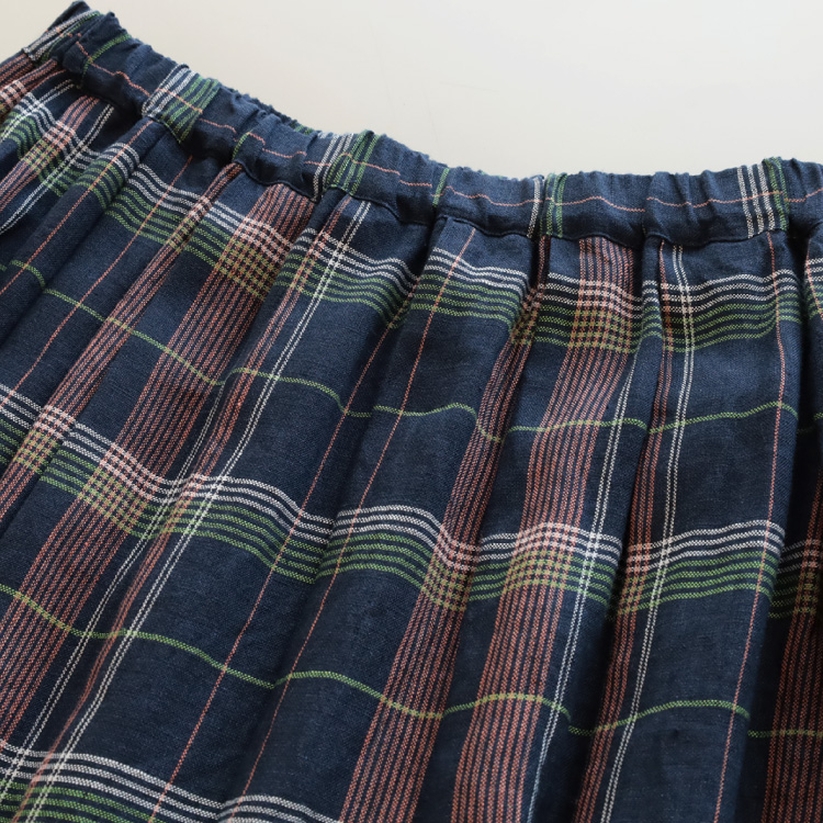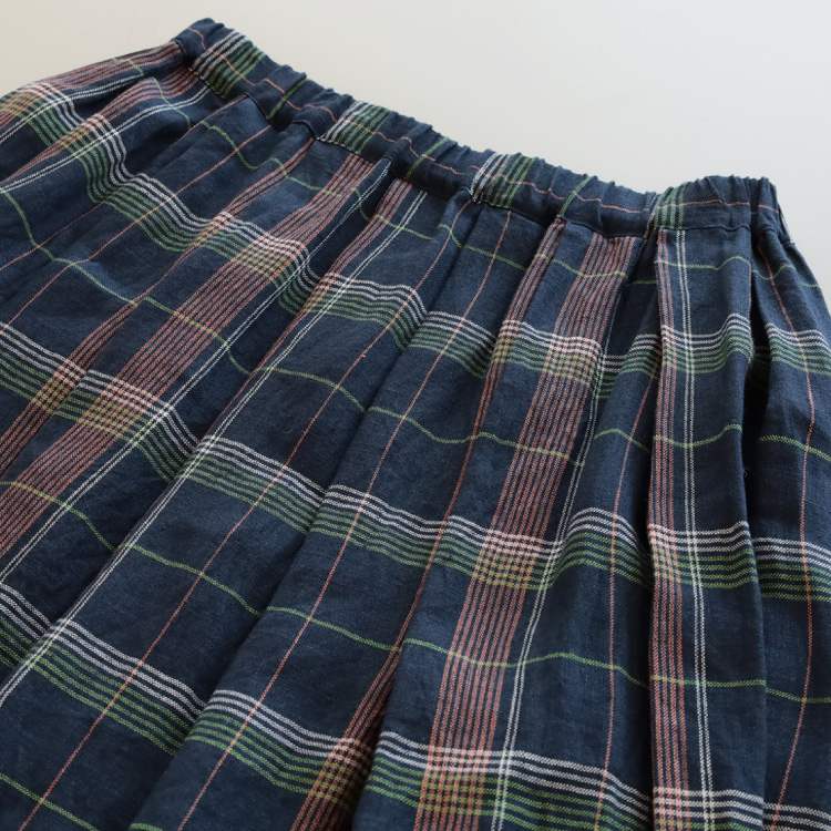 甘めに織られたリネンのやわらかな生地感と、五線譜のようなチェック柄が、爽やかで、涼しげな印象のスカートに仕上がっています。