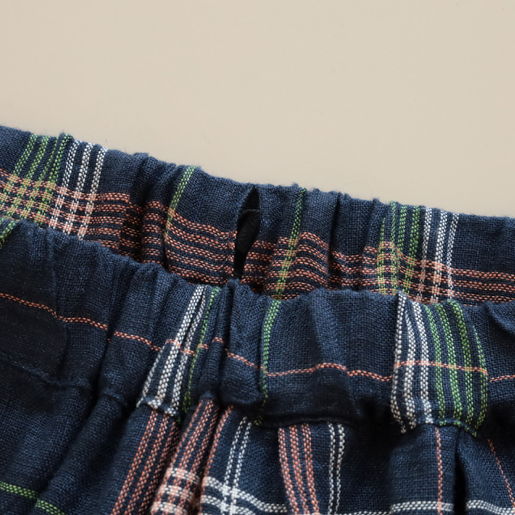 五線譜のような軽やかなチェック柄が印象的な、日本製のリネン生地を使用しています。