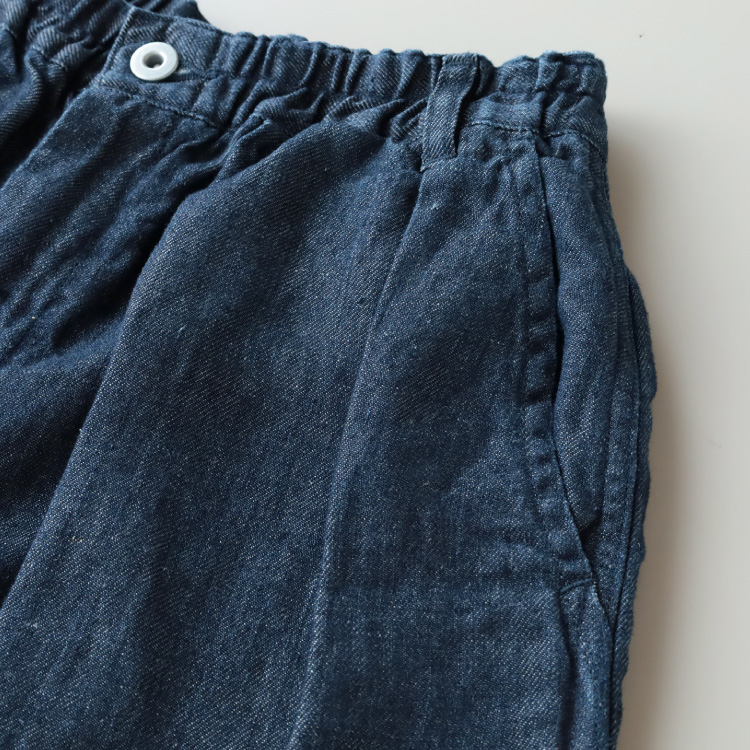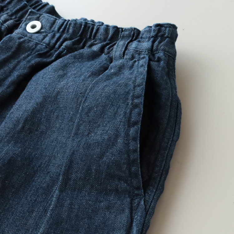 デニムの産地、岡山県の児島で作られた、リネン100%のデニムパンツです。