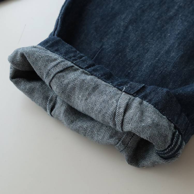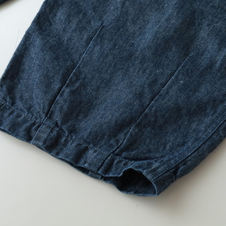リネン100%なので、ハリはありますが、綿のデニムよりもやわらかく、落ち感があります。
